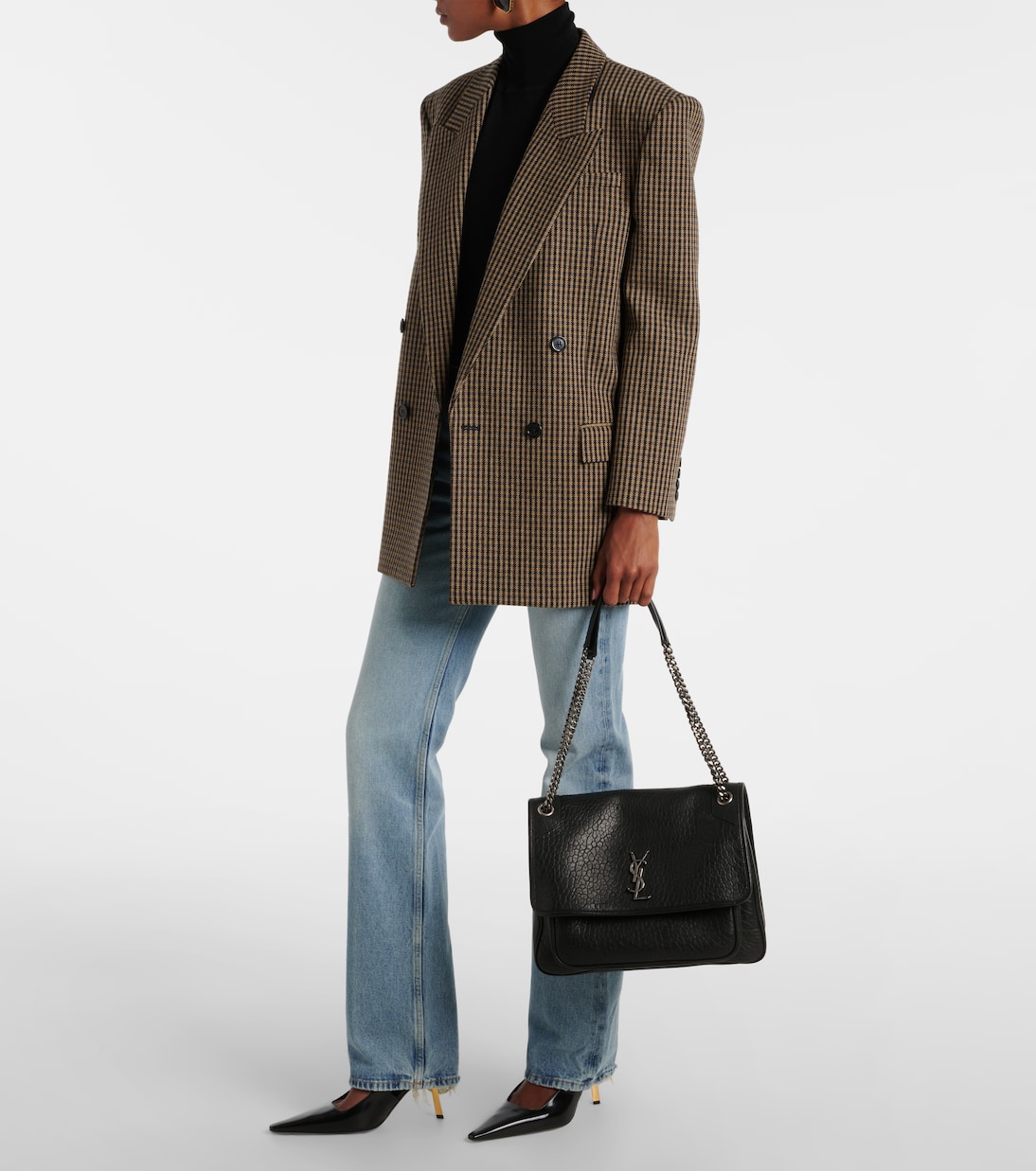 Ники большая кожаная сумка через плечо Saint Laurent, нуар