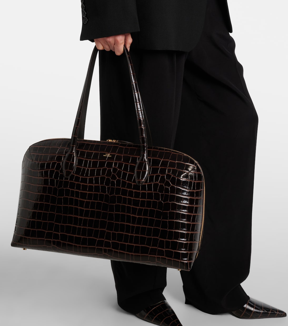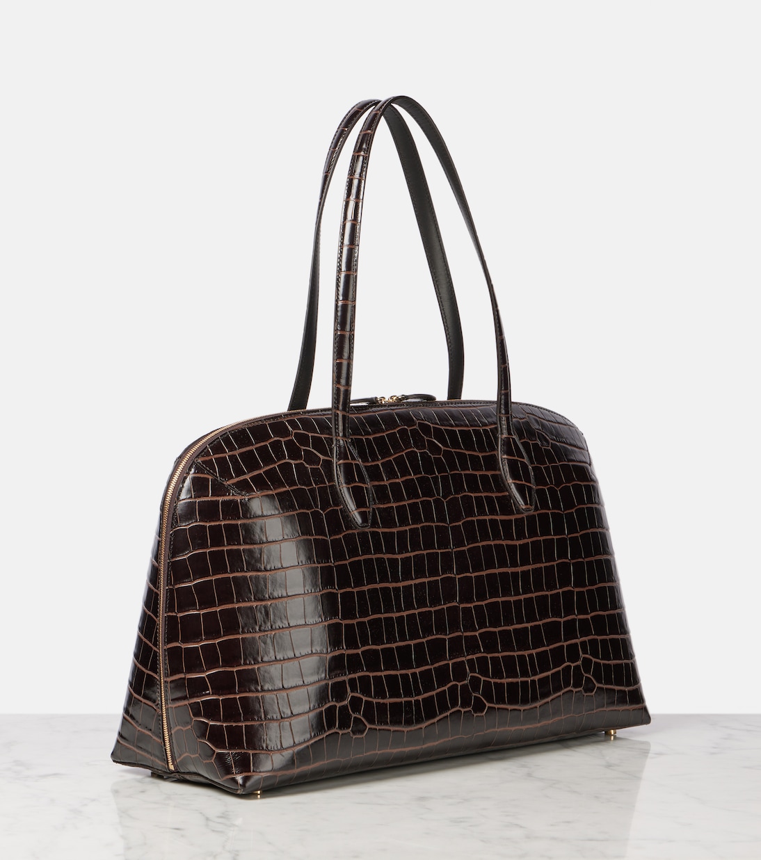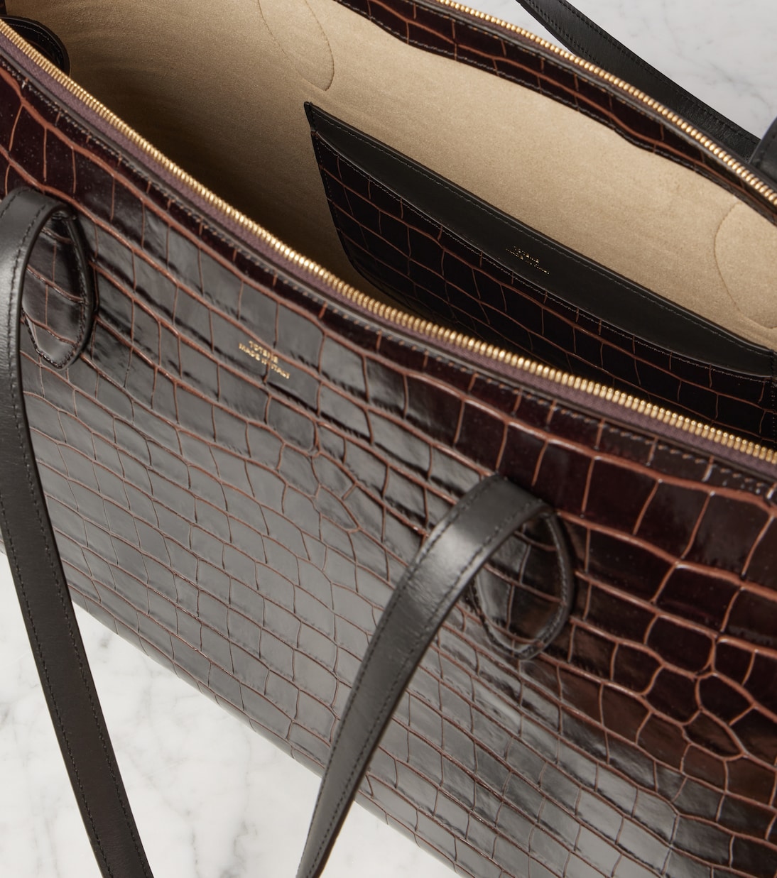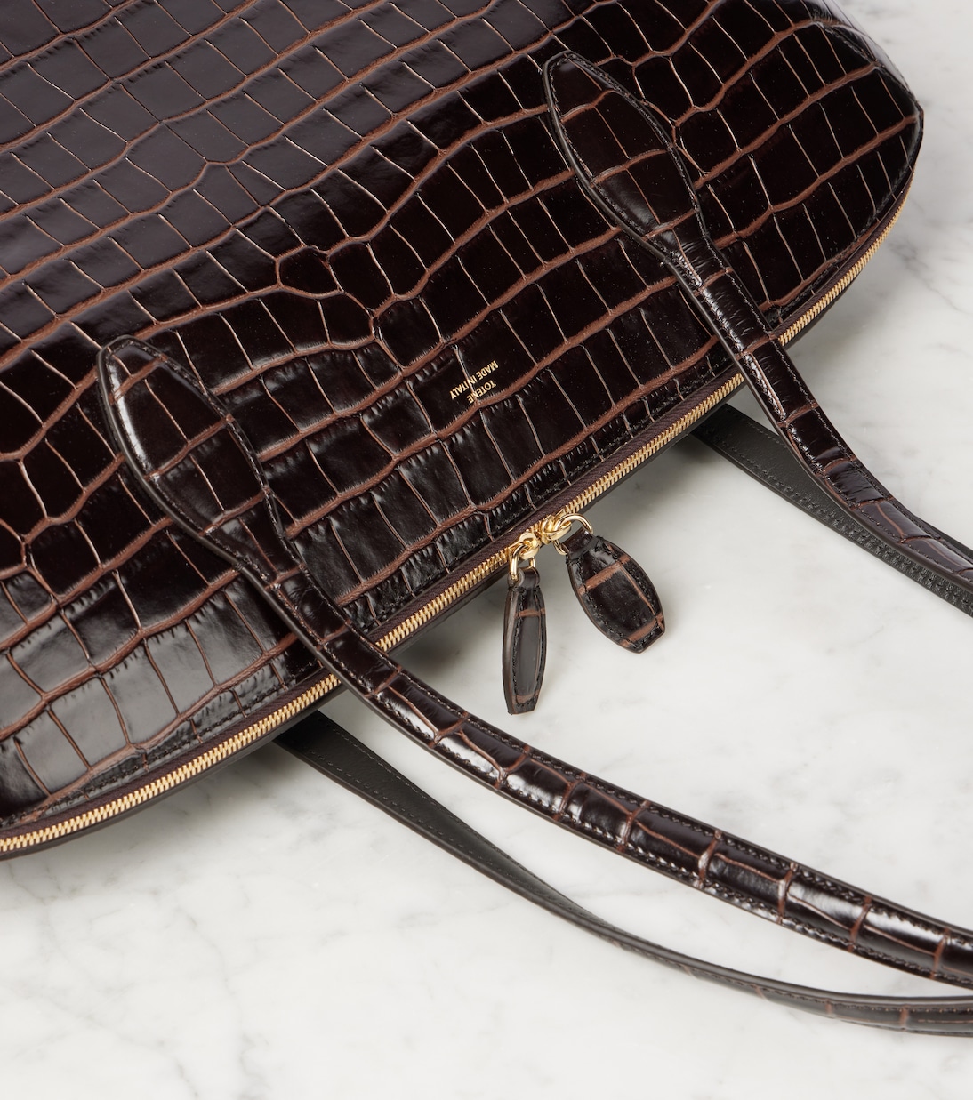 Сумка-тоут из кожи с эффектом крокодила Toteme, коричневый