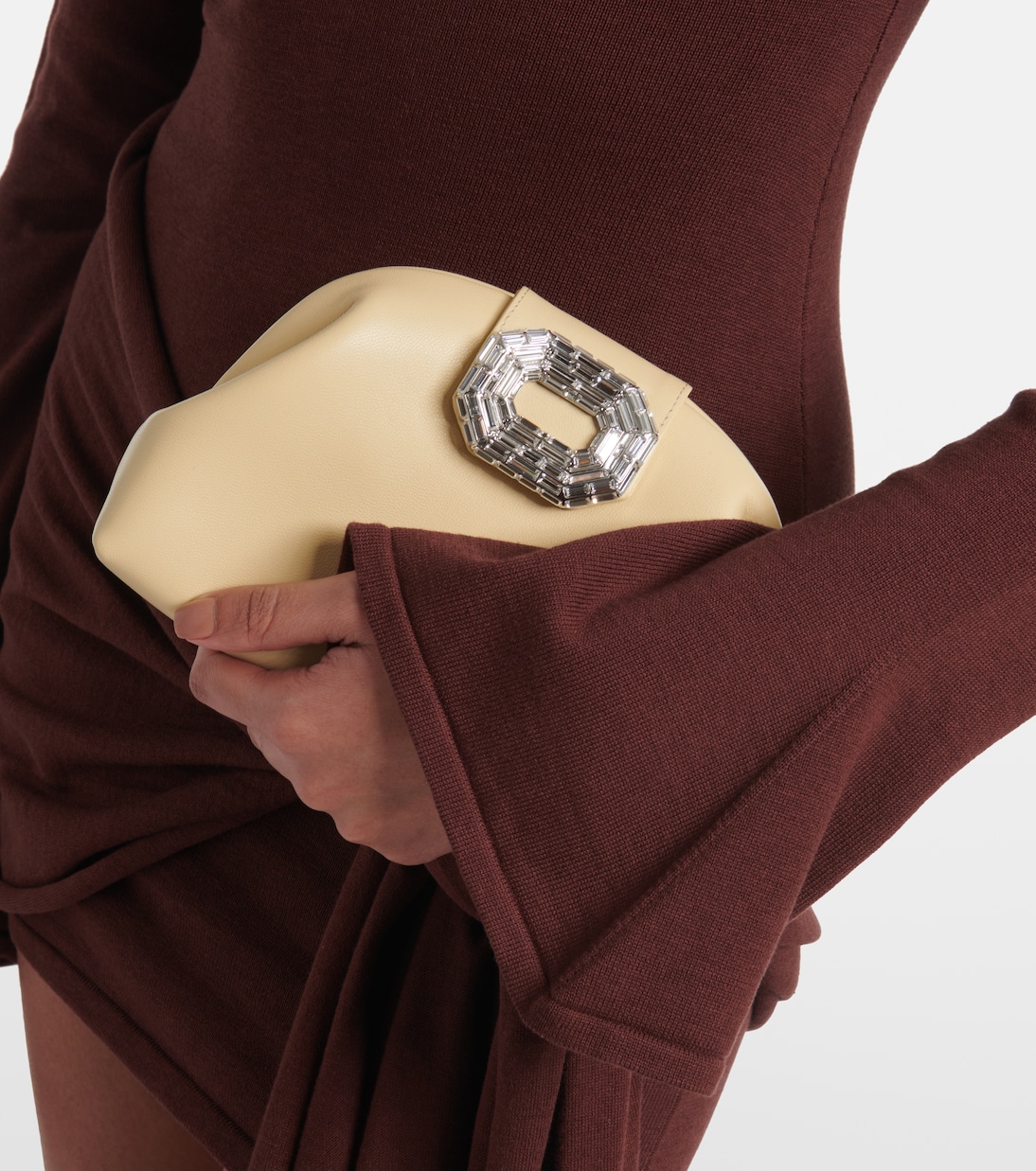 Кожаный клатч с декоративными элементами Camelia Amina Muaddi, Butter