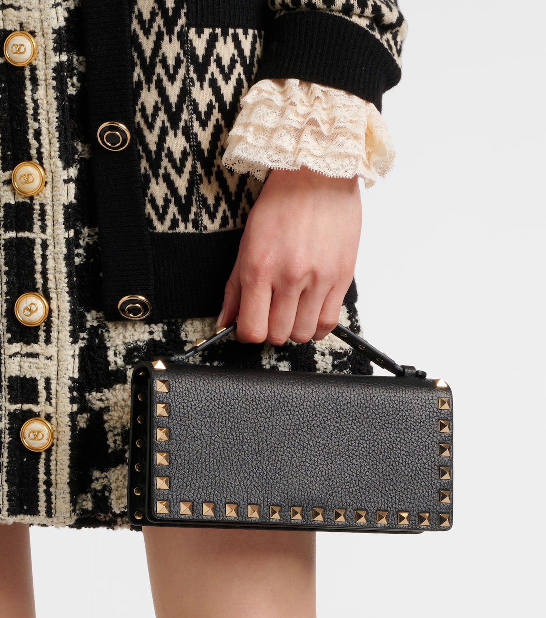 Кошелек на цепочке Rockstud из кожи Valentino Garavani, черный