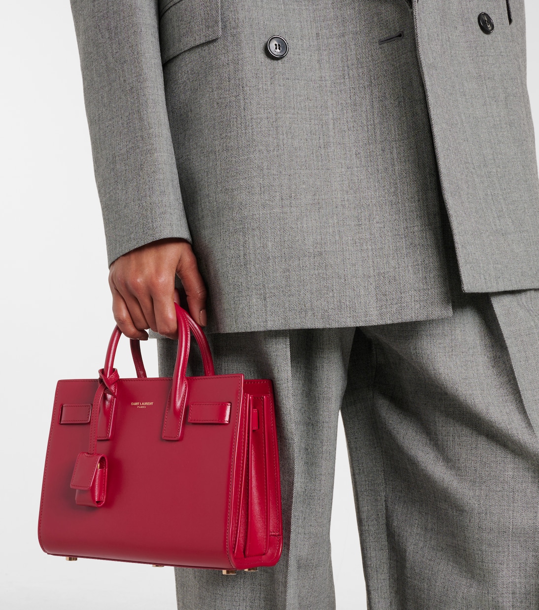 Сумка Sac De Jour Nano из кожи Saint Laurent, New Cherry Jam
