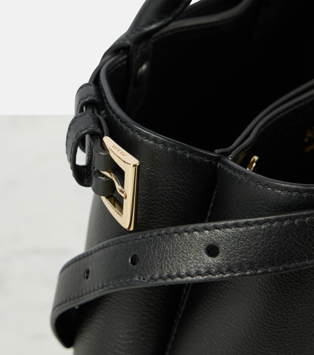 Сумка-тоут кожаная маленькая с пряжкой Prada, черный