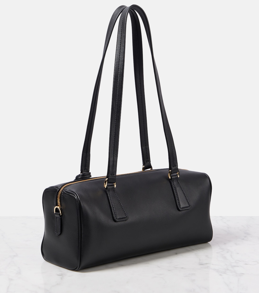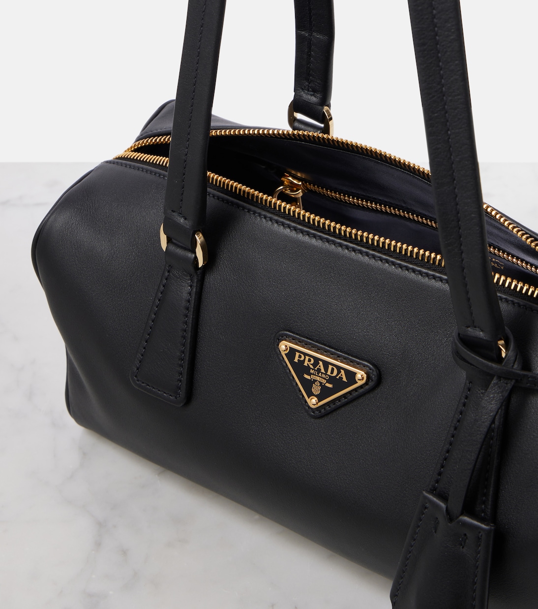 Средняя кожаная сумка через плечо Prada, черный