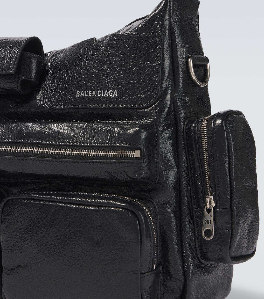 Кожаная сумка-почтальон Superbusy Balenciaga, черный