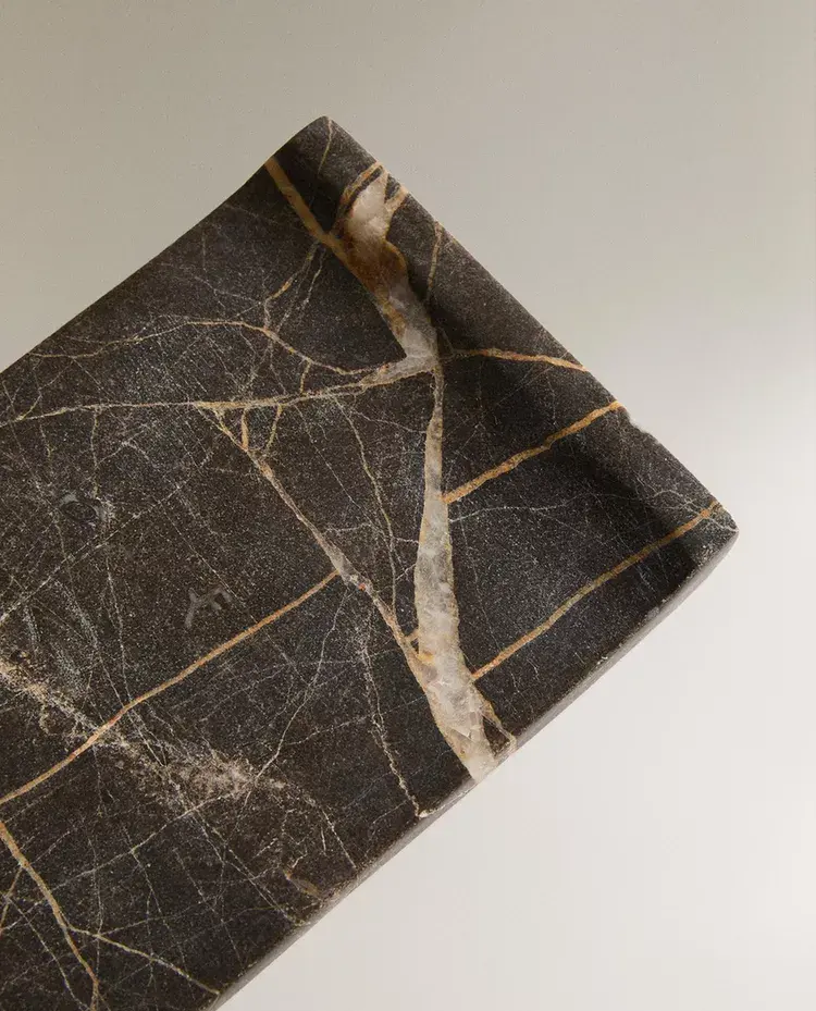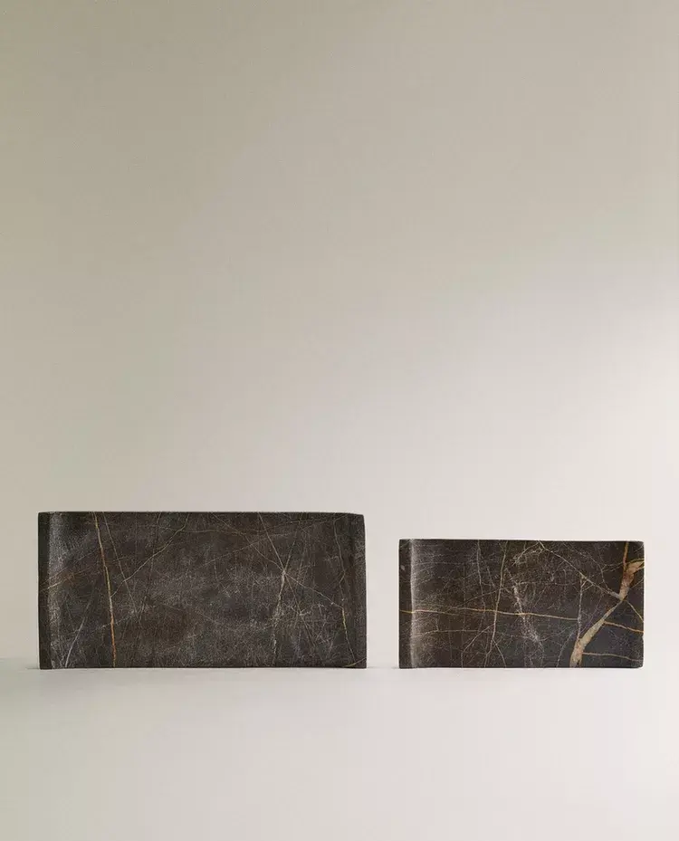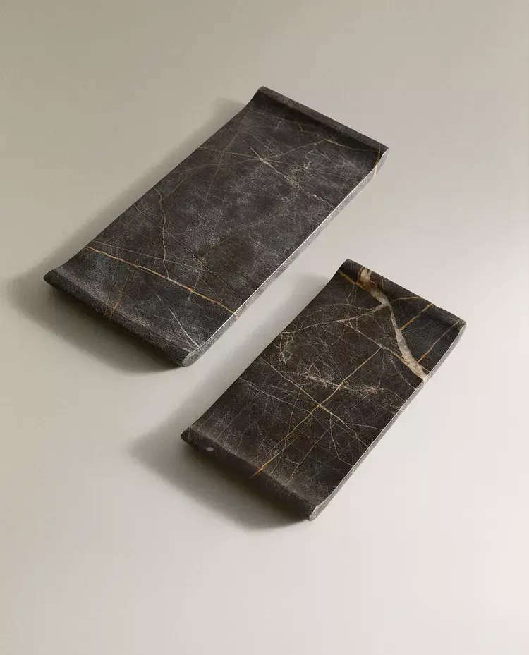 Прямоугольные мраморные подносы с прожилками. Доступны в двух размерах.