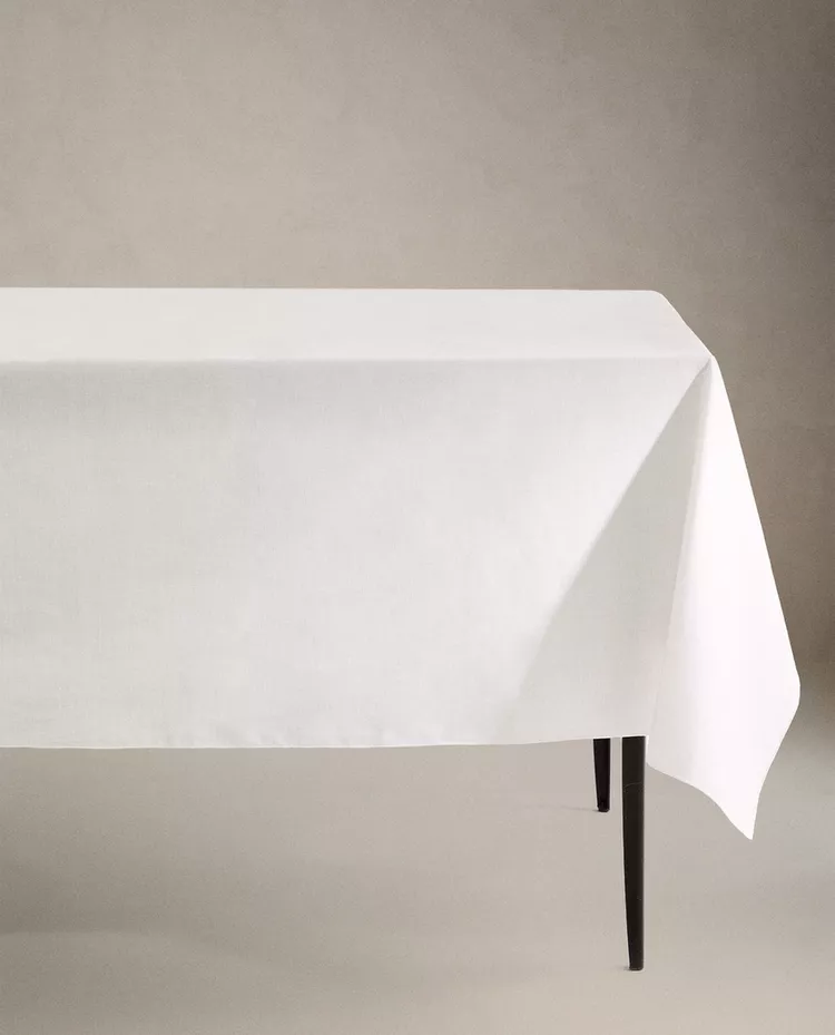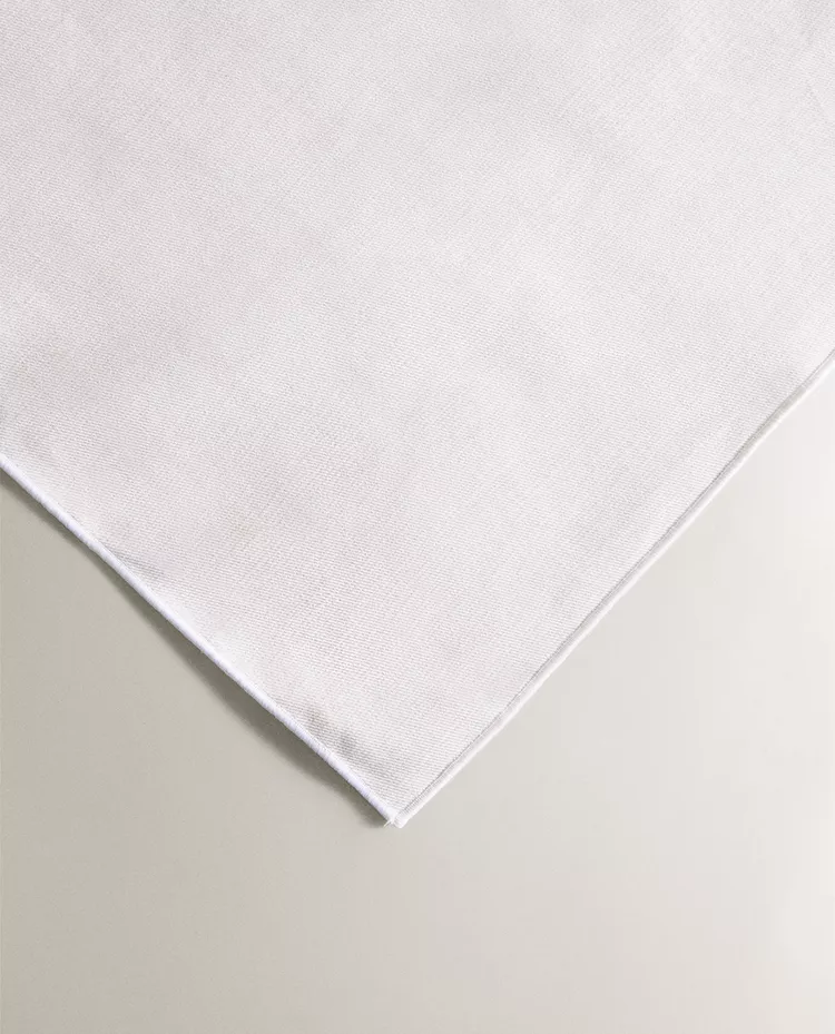 Скатерть из хлопчатобумажной ткани, пропитанной смолой, с оверлоком контрастного цвета.
