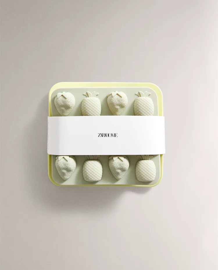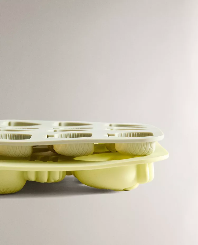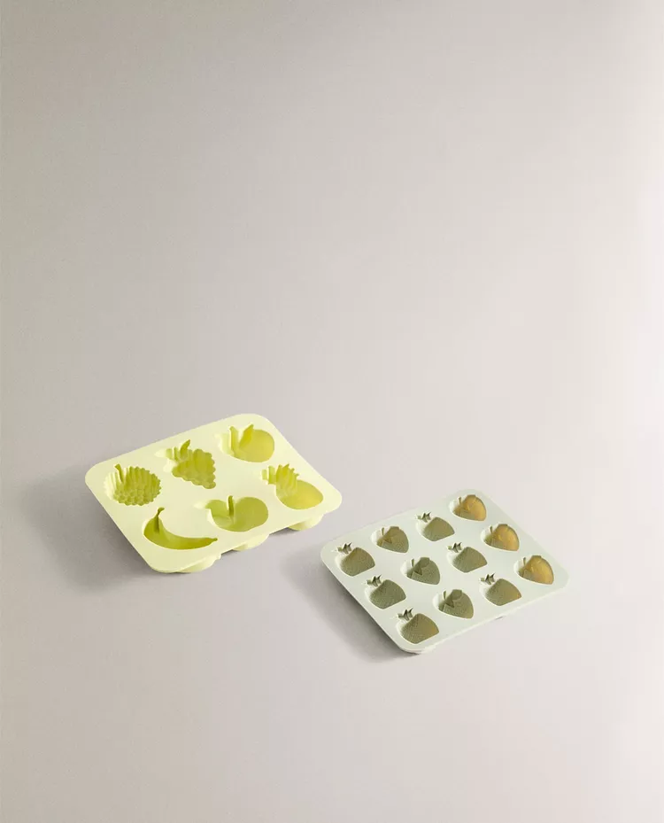 Силиконовые ведерки для льда в форме фруктов. В комплект входят 2 лотка: один на 12 отделений, другой на 6.