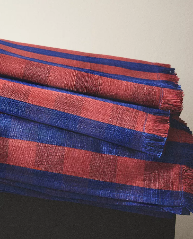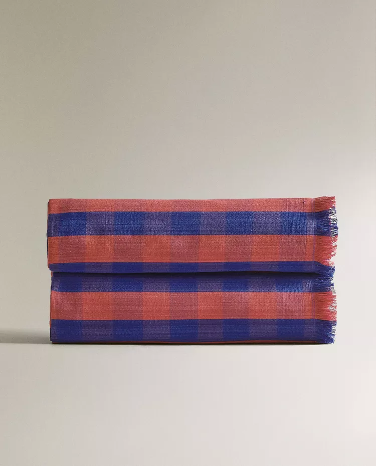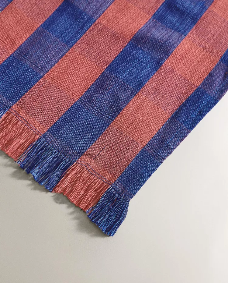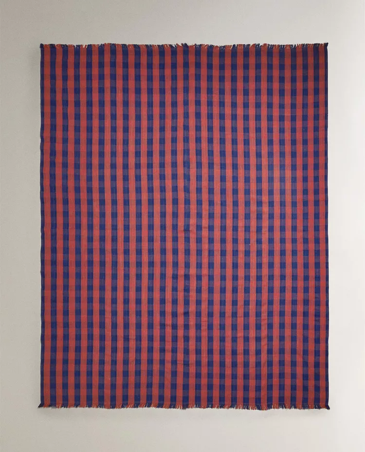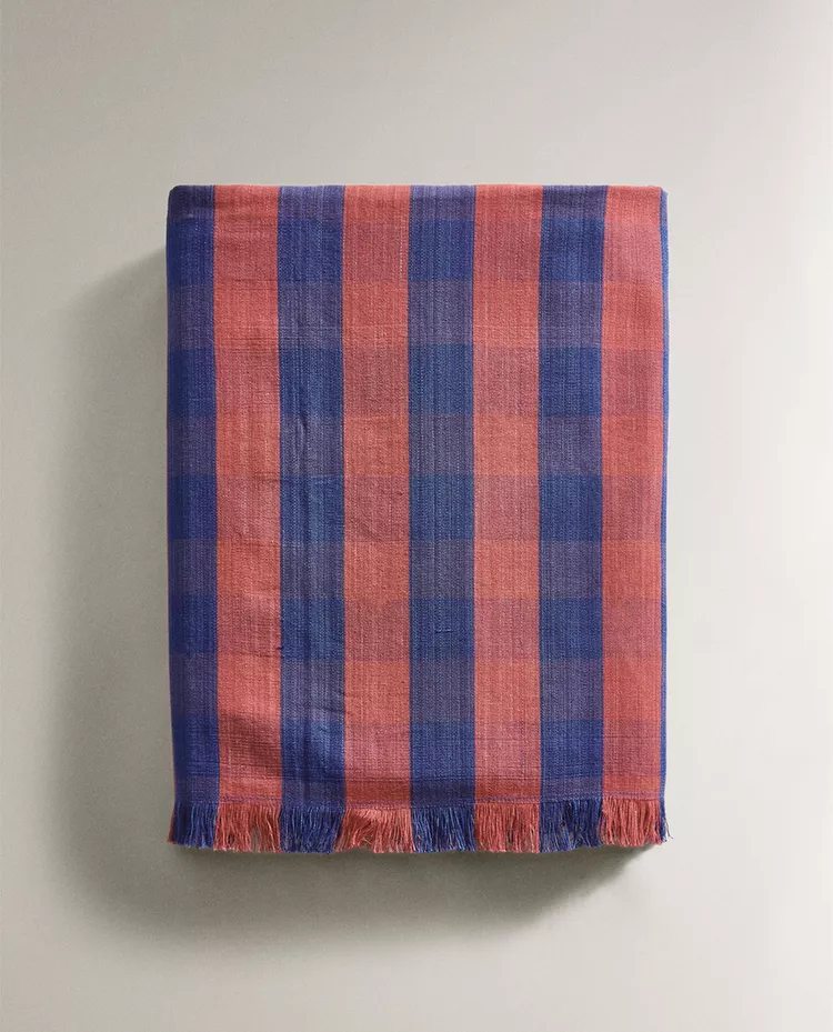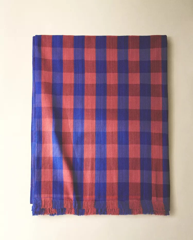 Плед из 100% окрашенной хлопковой нити с клетчатым рисунком.