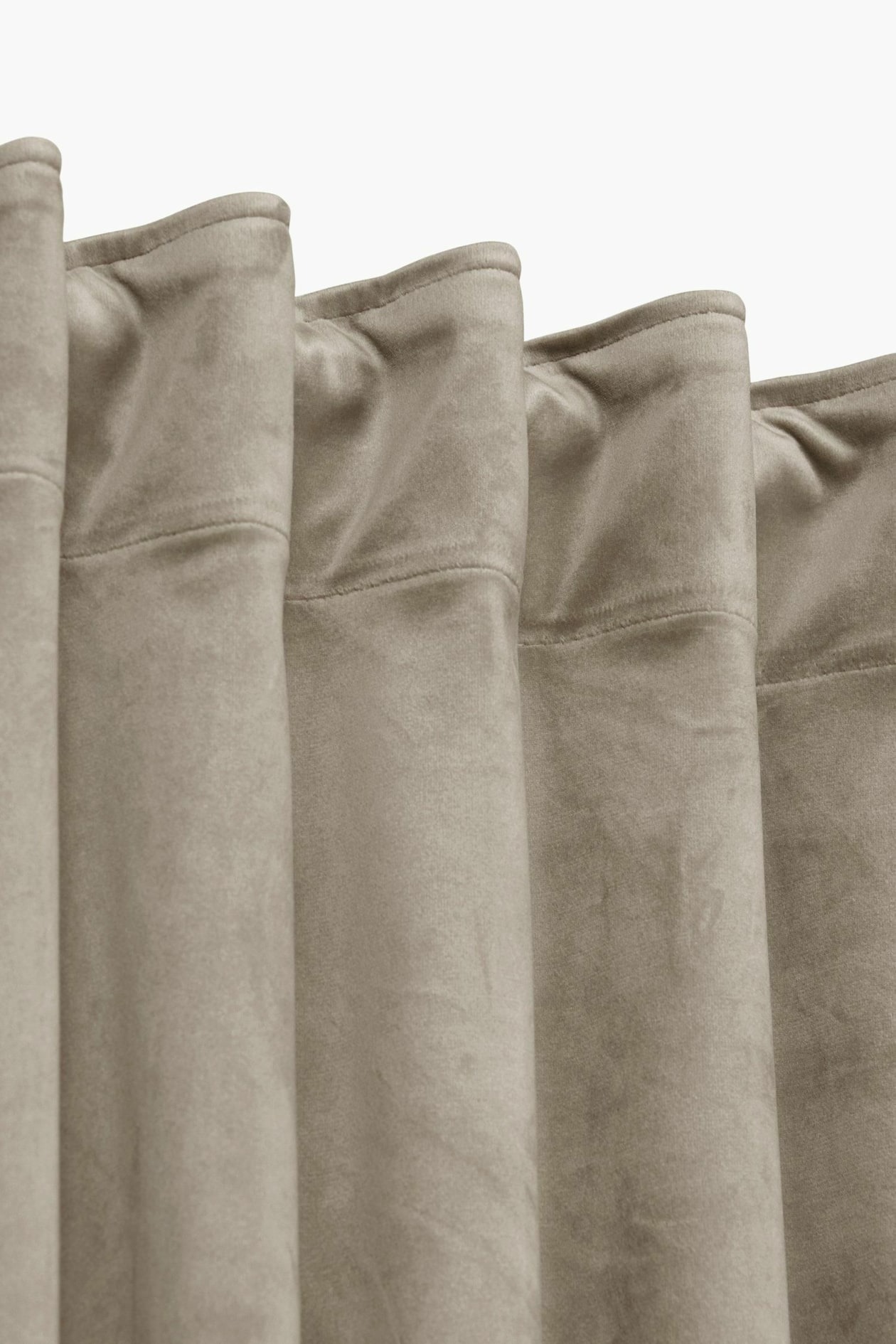 Украсьте окна блестящим бархатом премиум-класса для яркого и утонченного вида. Толщина ткани обеспечивает легкий эффект затемнения. Шторы имеют многослойную ленту в верхней части, прошитые длинные стороны и вшитый низ. Многослойная лента — это гибкое решение, позволяющее повесить штору на металлические крючки или непосредственно на штангу, в зависимости от желаемого эффекта складок. Используйте ленту Easy Fix, чтобы отрегулировать длину до оптимальной длины без необходимости использования швейной машины. Размеры каждой шторы составляют 135x280 см, но помните, что усадка после стирки может составлять до 2%.