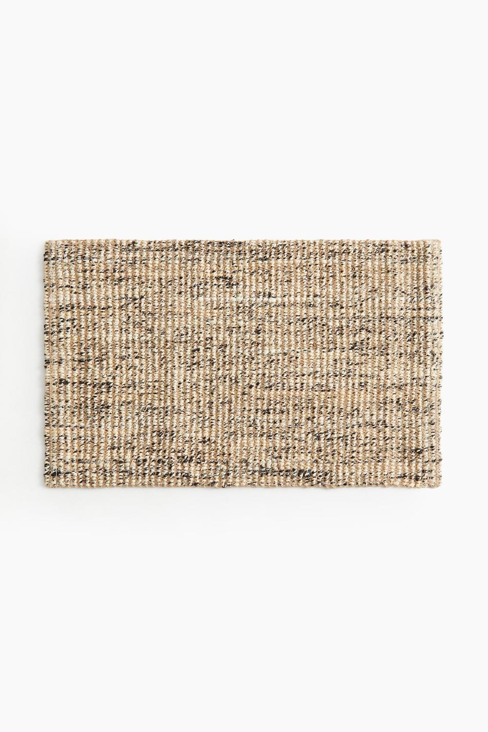 Этот коврик для двери изготовлен из плетеной смеси джута и сизаля со слегка пузырчатой поверхностью и нескользящей изнанкой.