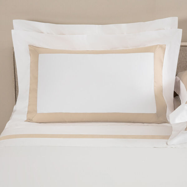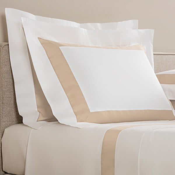 Элегантная наволочка из гладкого, мягкого и блестящего длинноволокнистого хлопкового сатина станет прекрасным акцентом любой классической спальни. Контрастная кайма добавит вашей спальне яркого, но в то же время минималистичного акцента.