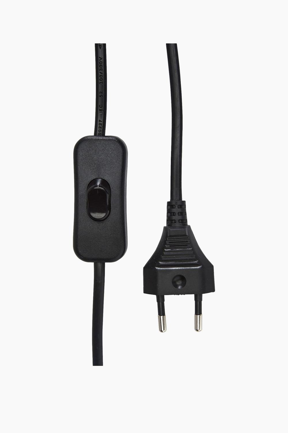Черный кабель длиной 1,7 м с выключателем и плоской вилкой европейского стандарта.