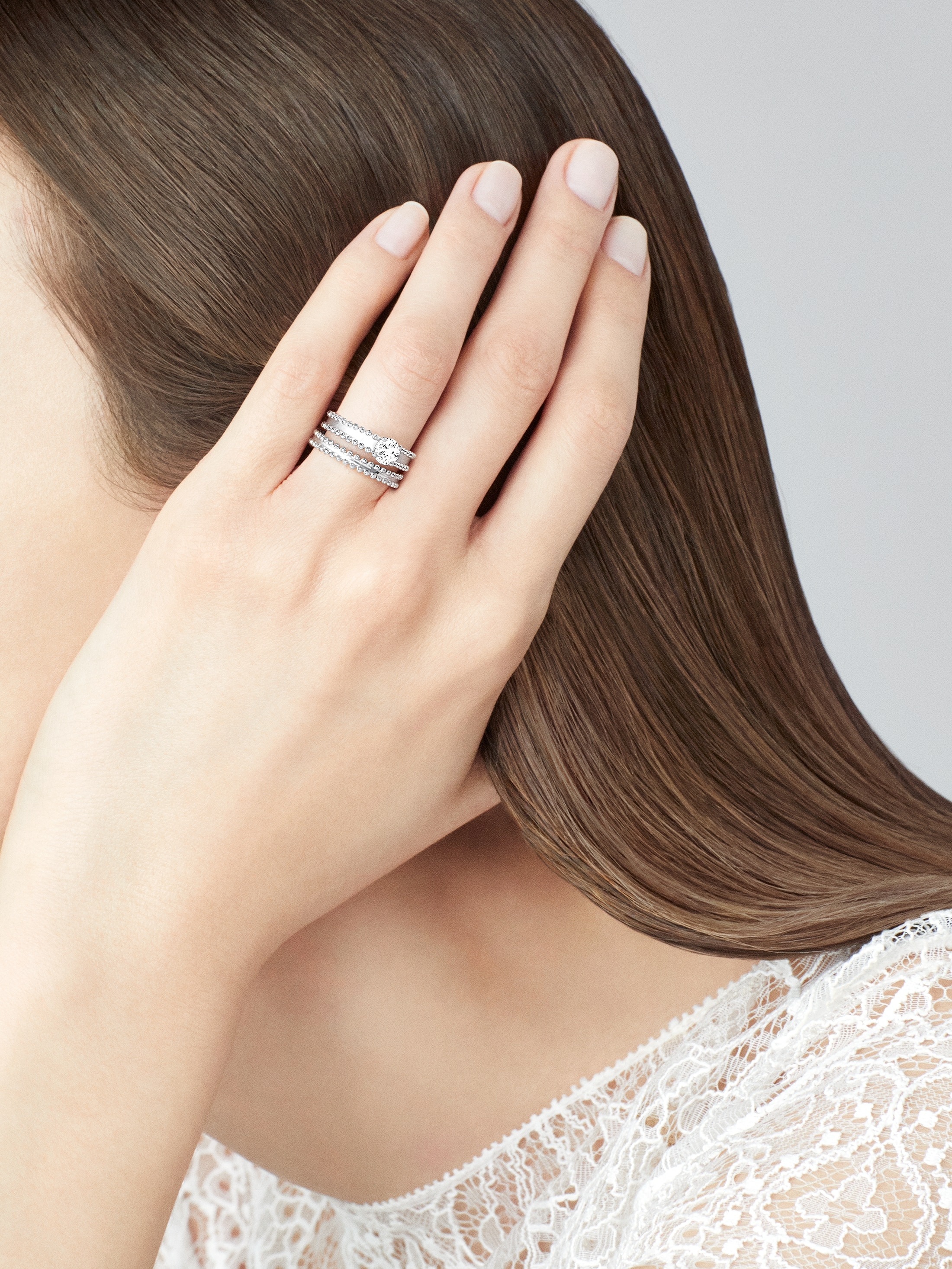Родившийся в результате брака Альфреда Ван Клифа и Эстель Арпельс, дом неразрывно связан с историями любви. Van Cleef & Arpels отдаёт дань уважения своей основательнице и первой женщине, Эстель Арпельс, создав одноименную коллекцию. Кольцо, сочетающееся с солитером Estelle, изящно отделано платиновыми бусинами, подчёркивающими блеск полированного металла.