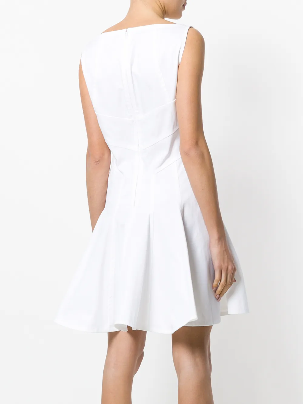 Белое поплиновое платье с V-образным вырезом из хлопкового микса от Dsquared2(Дискваред). V-образная горловина, модель без рукавов, расклешенная юбка, короткая длина.