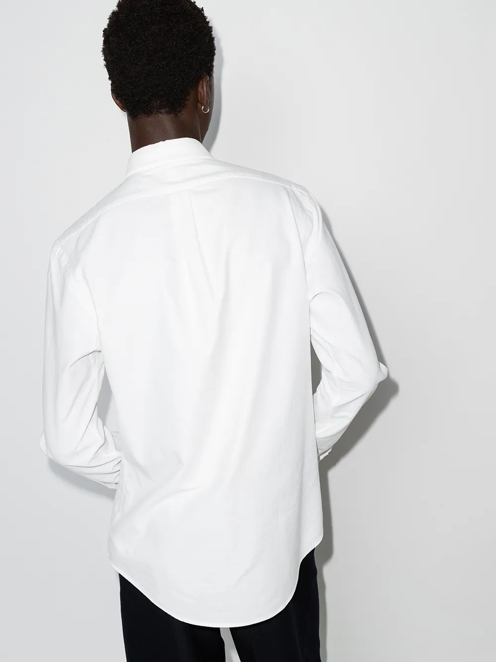 Классическая рубашка оксфорд от Polo Ralph Lauren (Поло Ральф Лорен). Воротник на пуговицах, застежка на пуговицах спереди, длинные рукава, манжеты на пуговицах, закругленный подол и вышитый логотип на груди. Цвет: белый.