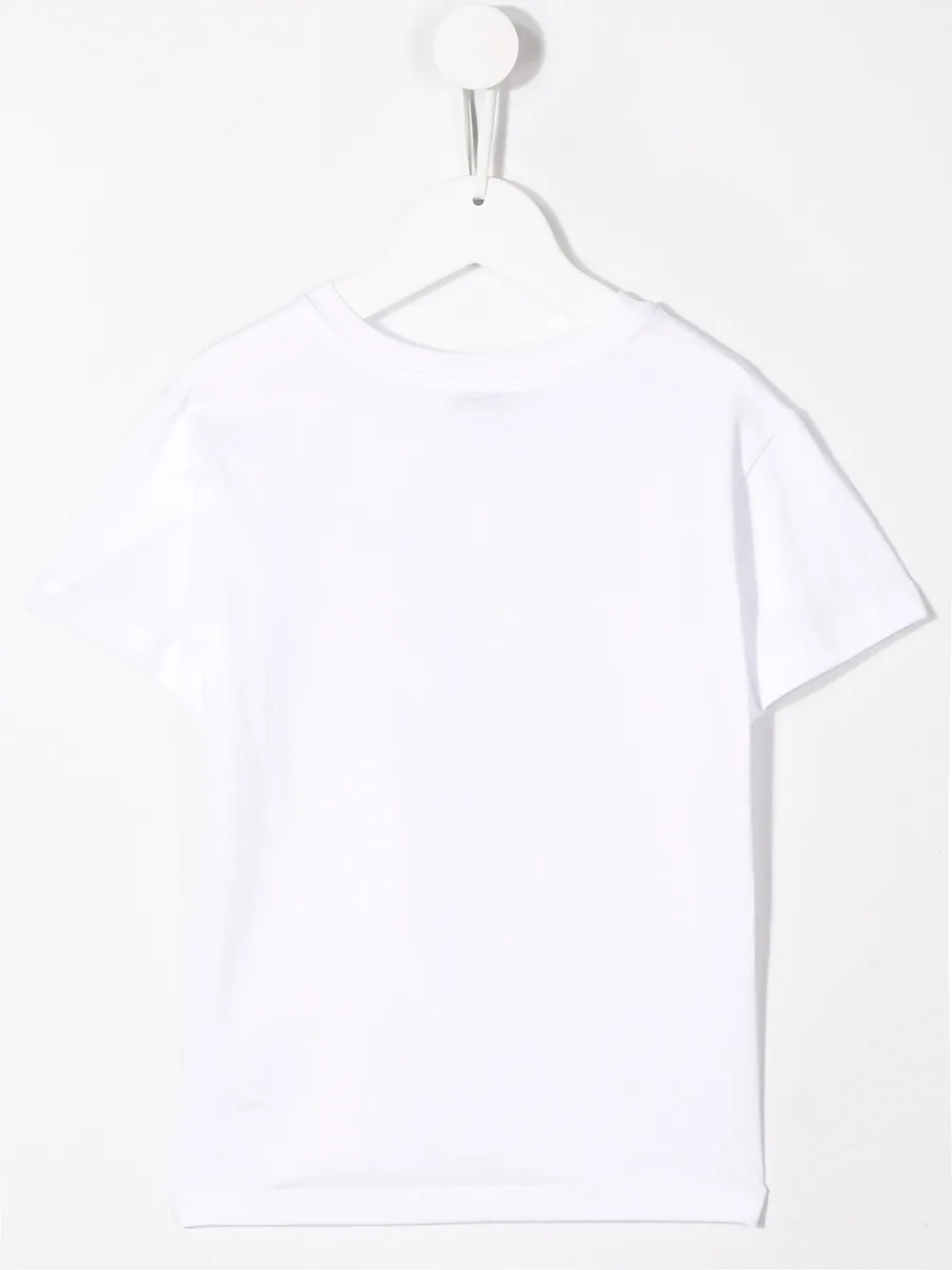 Вышитый логотип на груди, круглый вырез, короткие рукава и прямой подол. Цвет: белый.