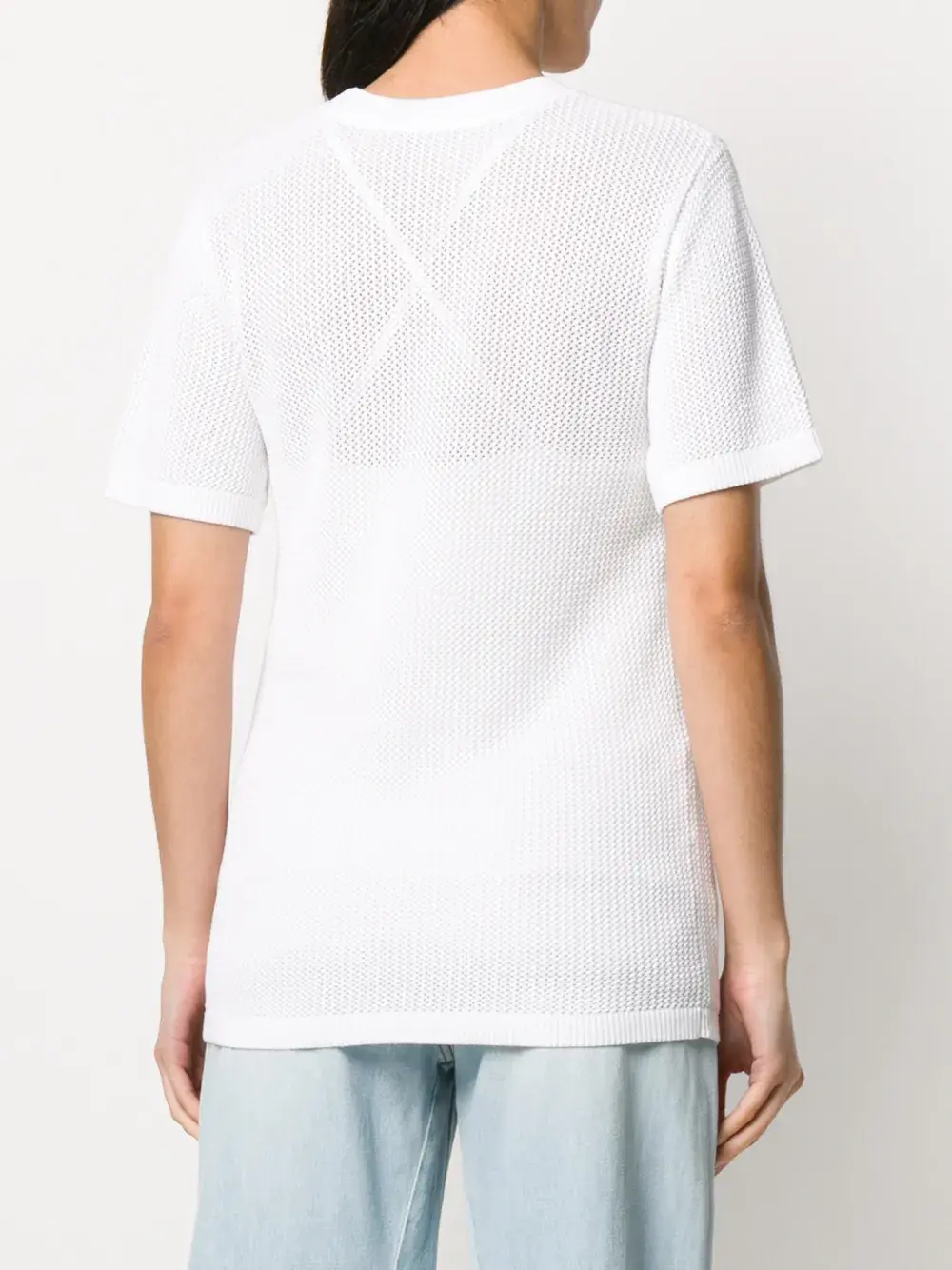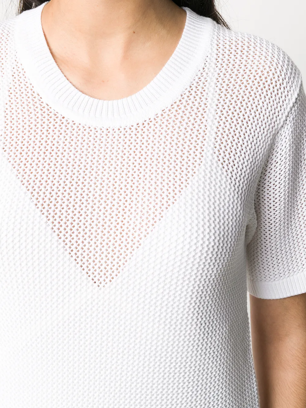 Сетчатая футболка от Joseph (Джозеф). Круглая горловина в рубчик, короткие рукава, прямой подол и подол и манжеты в рубчик. Цвет: белый.