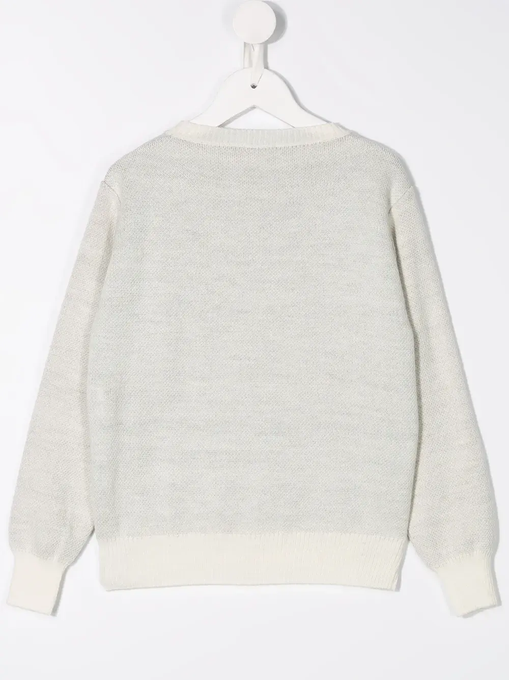 Джемпер Reindeer от Siola. Круглый вырез под горло в рубчик, длинные рукава, вязка интарсия и подол и манжеты в рубчик.