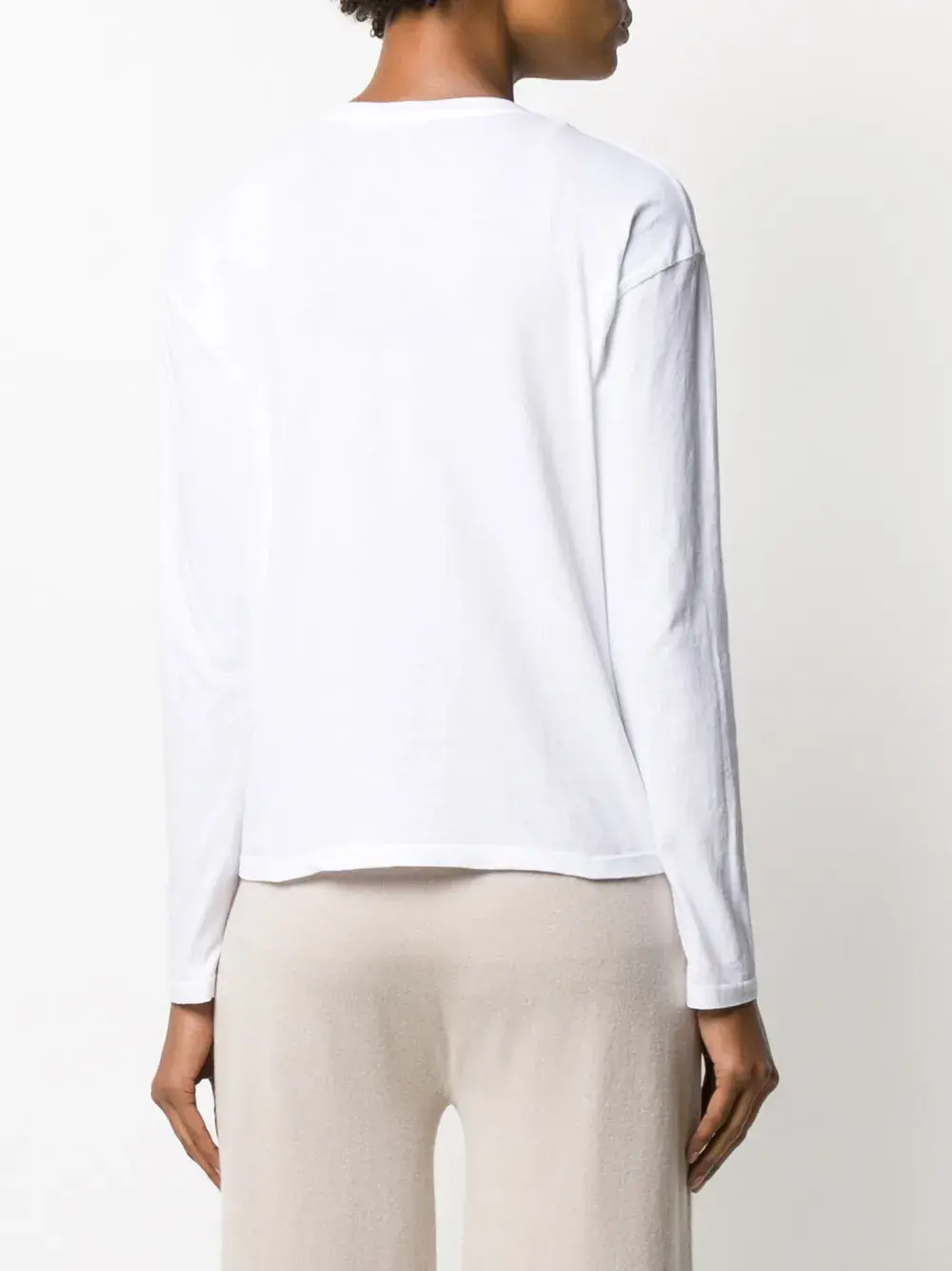 Футболка из джерси от James Perse (Джеймс Пирс). Круглый вырез под горло, приспущенные плечи, длинные рукава, свободный крой и прямой подол. Цвет: белый.