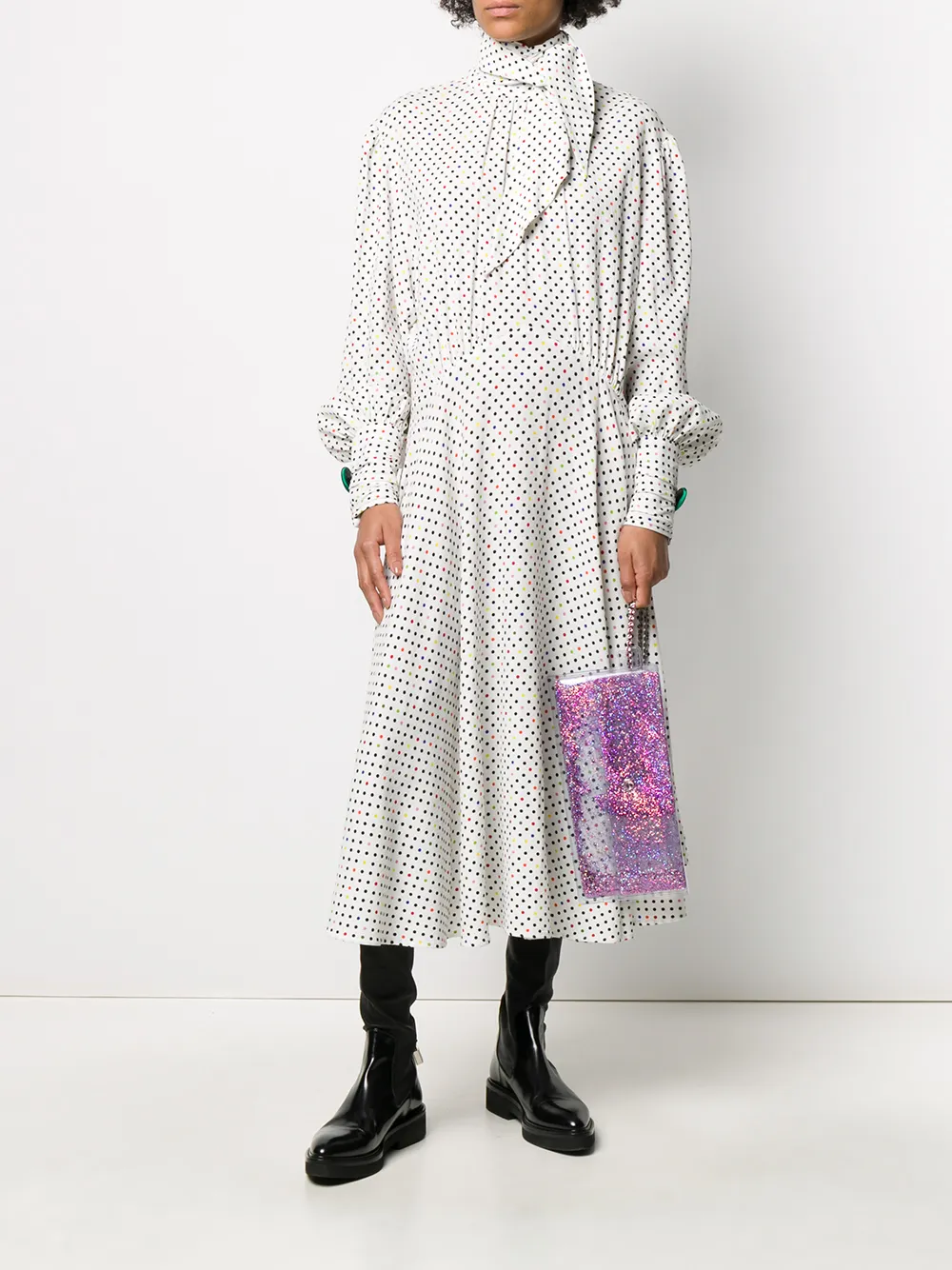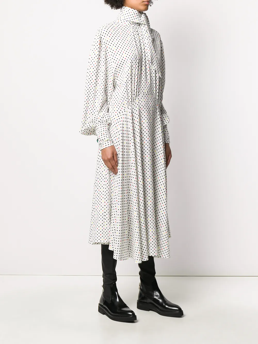 Платье в горох с завязками на воротнике Christopher Kane, белый