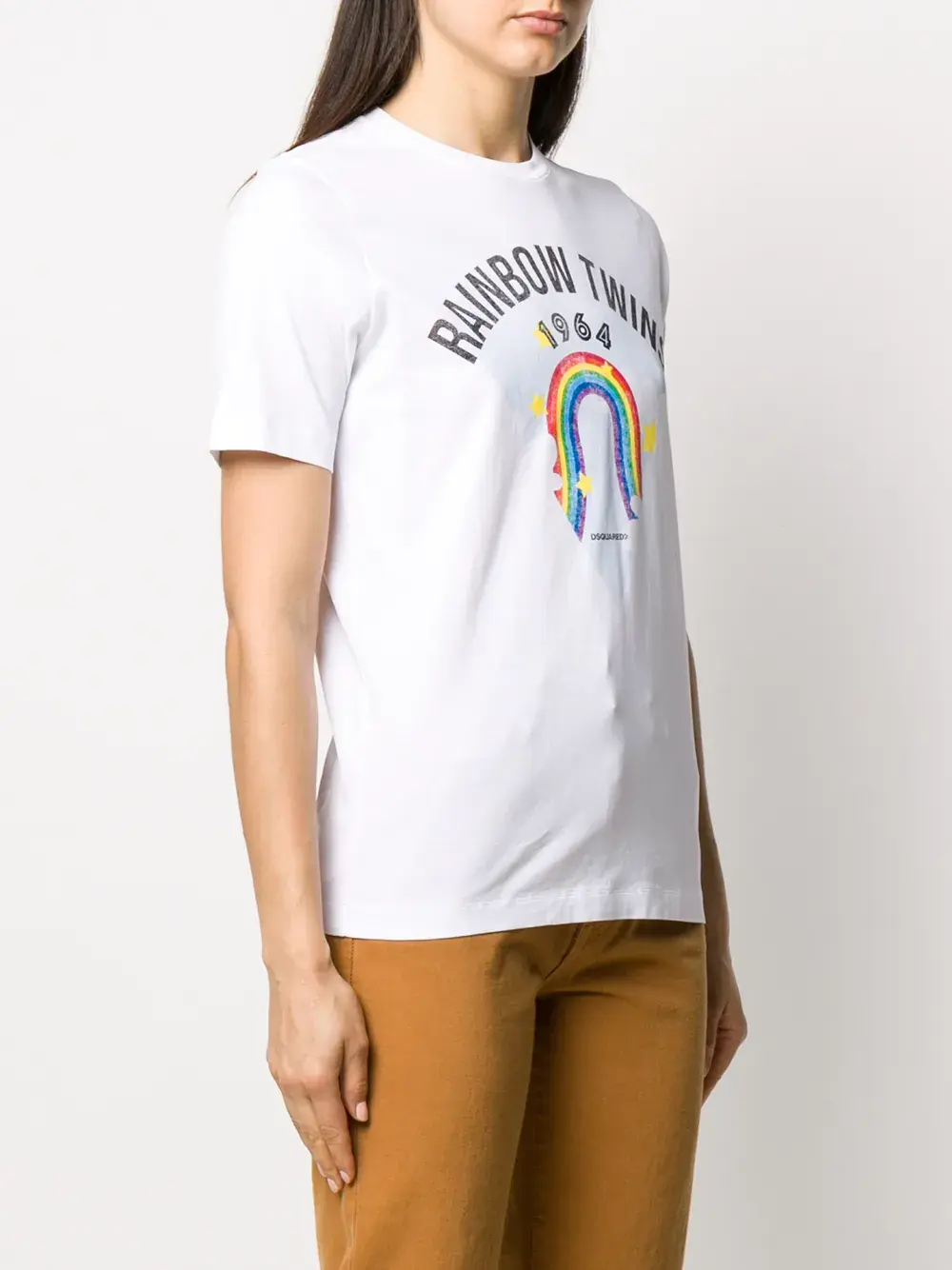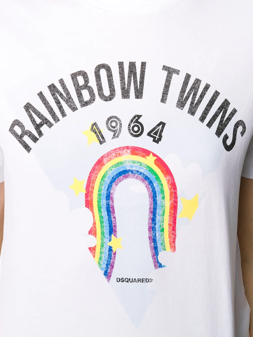 Футболка с принтом от Dsquared2 (Дискуэд). Круглый вырез, короткие рукава и прямой подол. Цвет: белый.