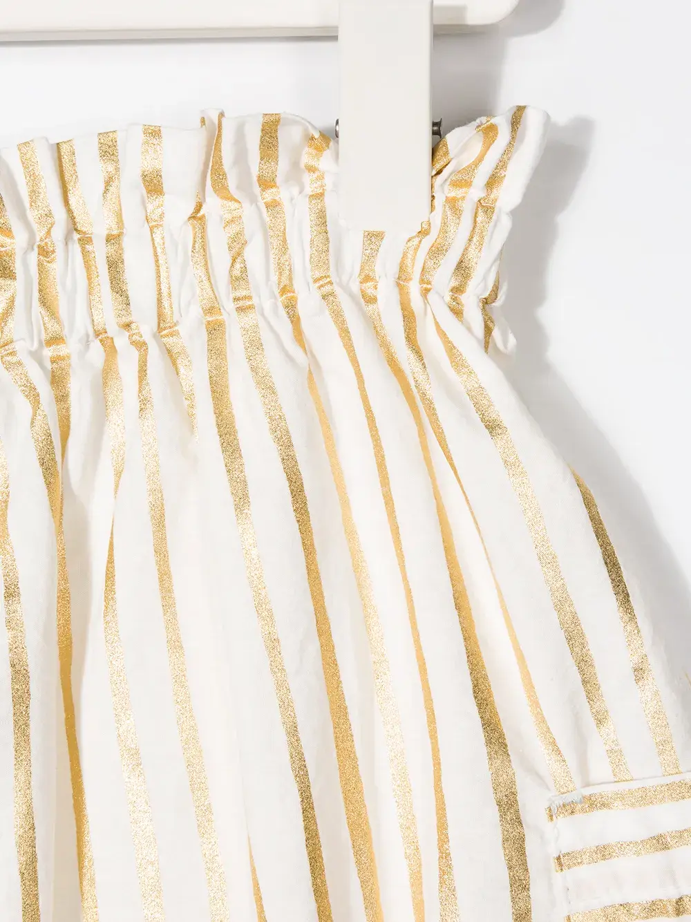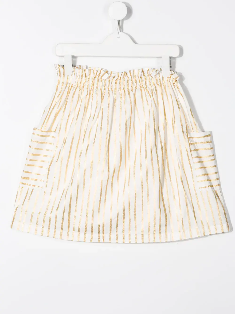 Полосатая юбка от Andorine. Узор в полоску, талия на эластичном шнурке, короткая длина, боковые карманы и короткая длина. Цвет: белый.