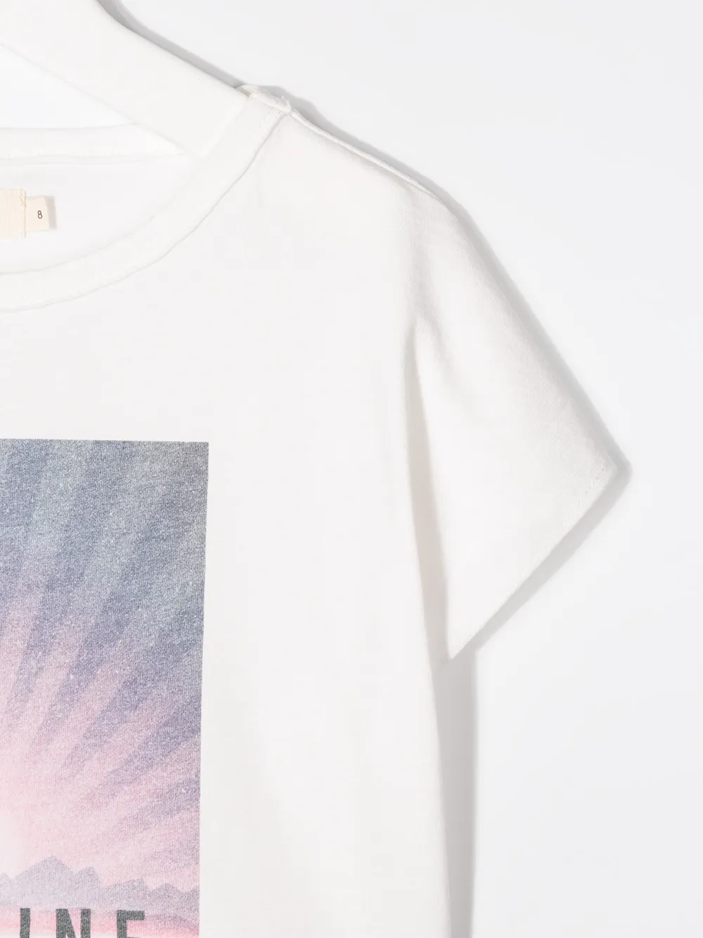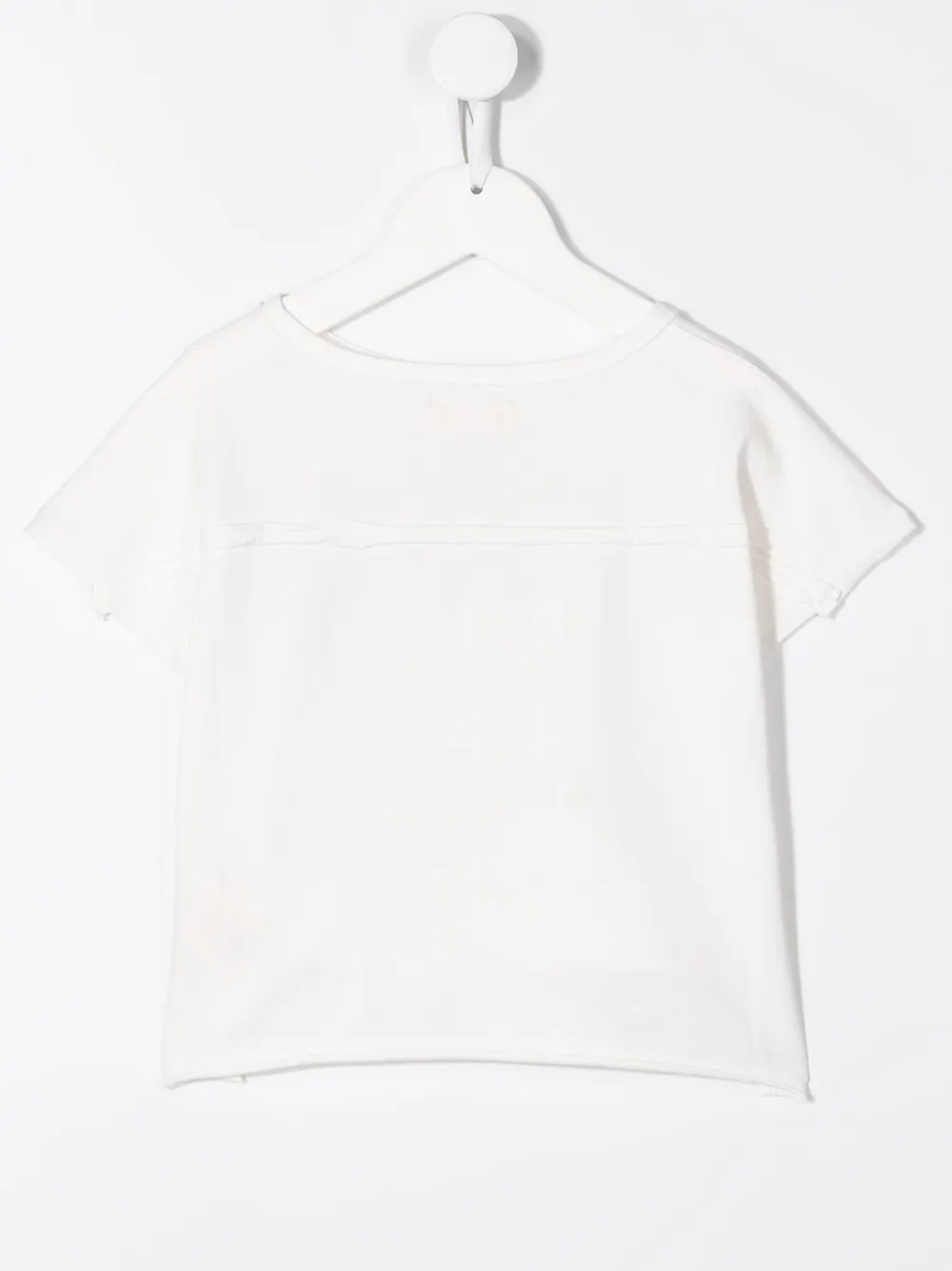 Футболка с графичным принтом от Andorine. Принт спереди, круглый вырез, короткие рукава, прямой подол и укороченная длина. Цвет: белый.