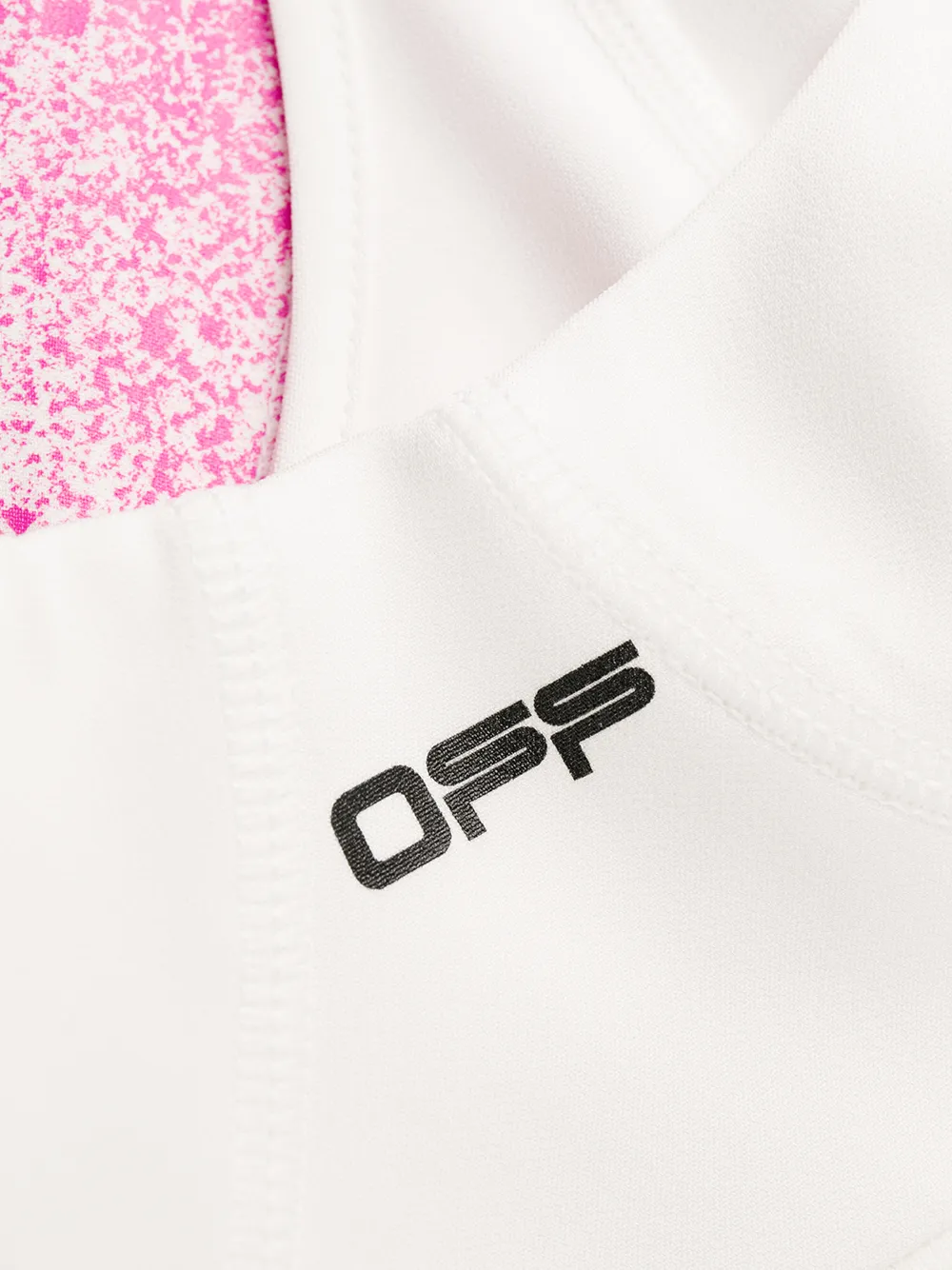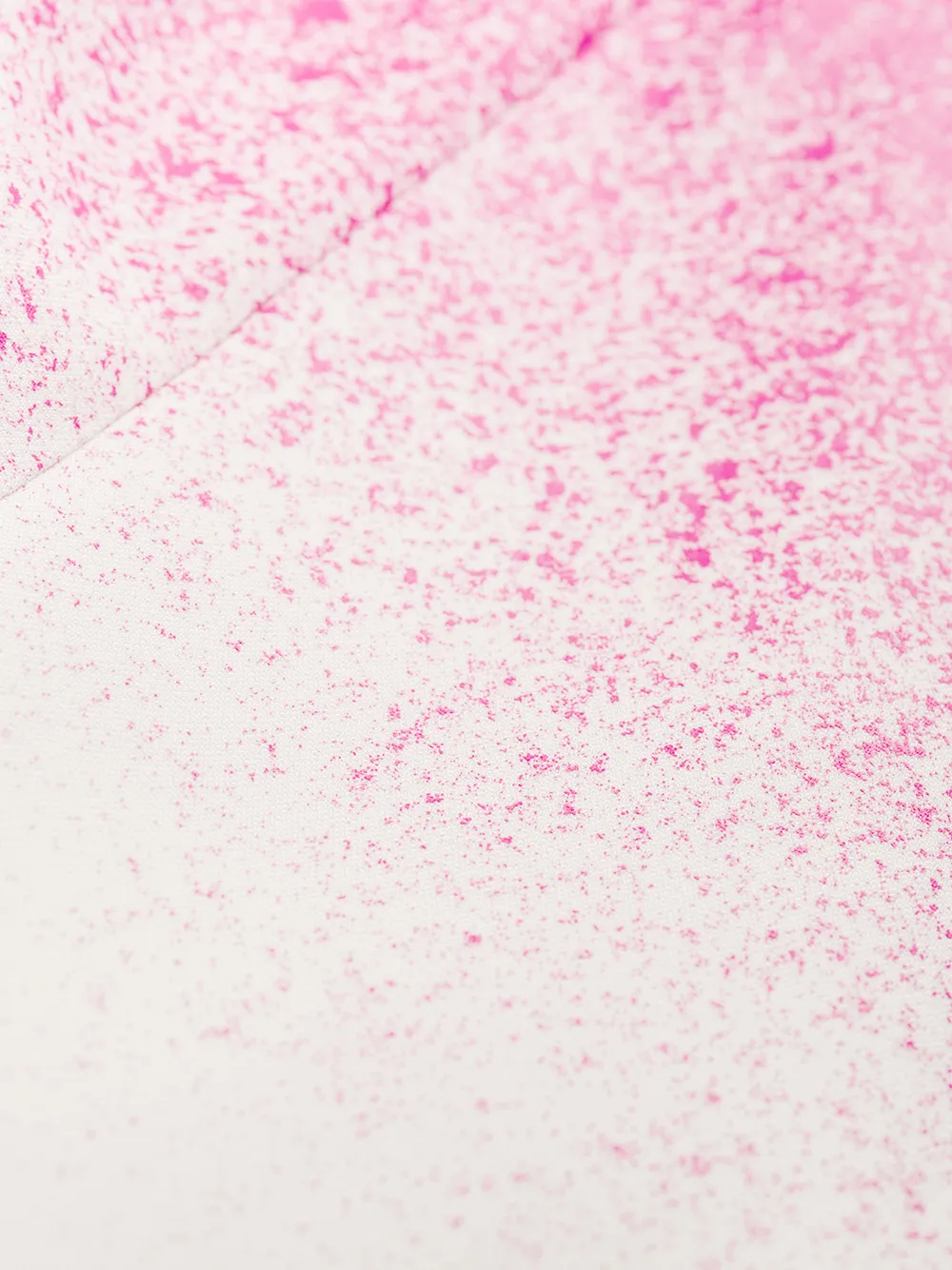 Эффект разбрызганной краски, градиентный эффект, принт с логотипом на груди, круглый вырез и эластичная модель.