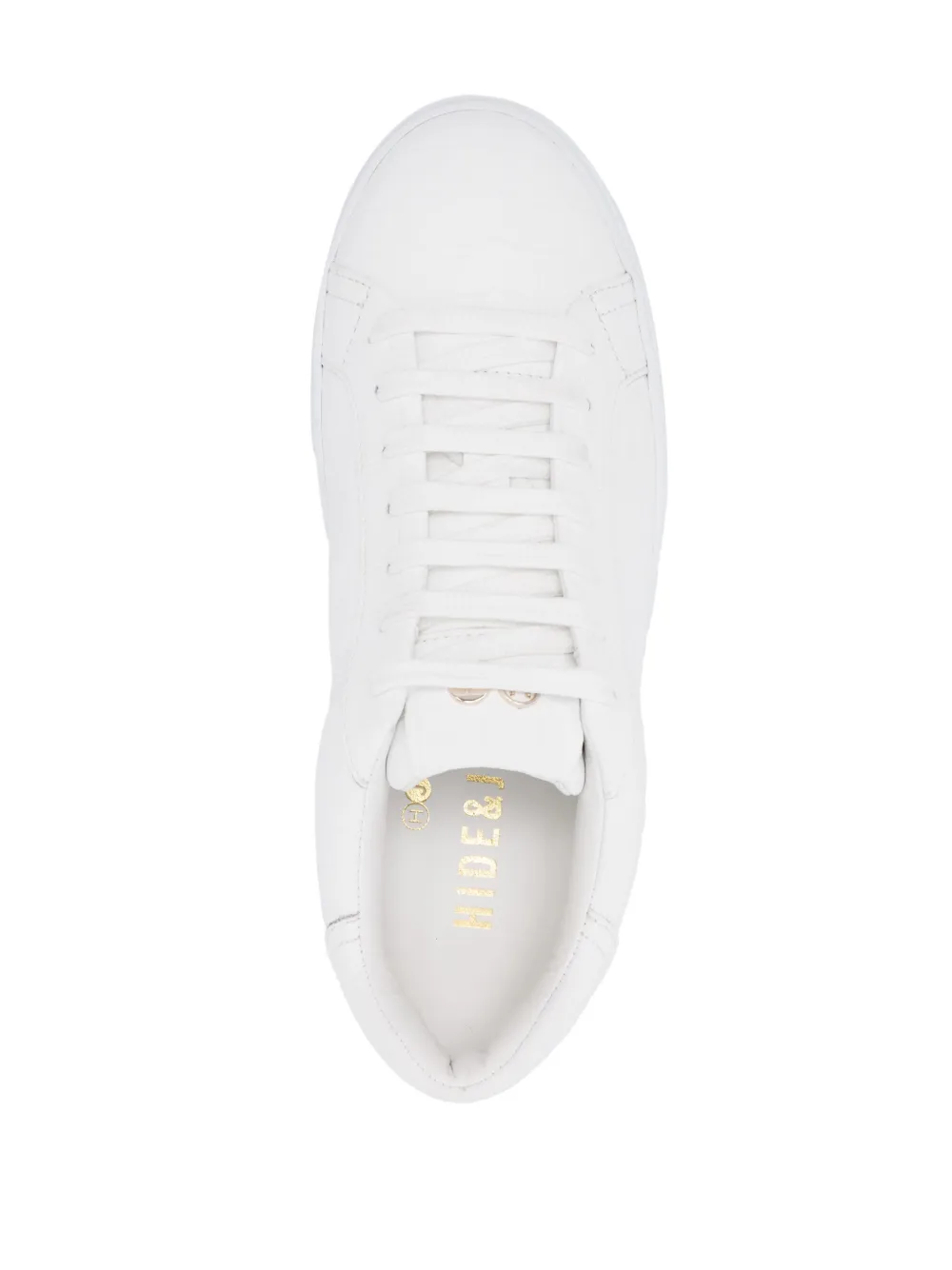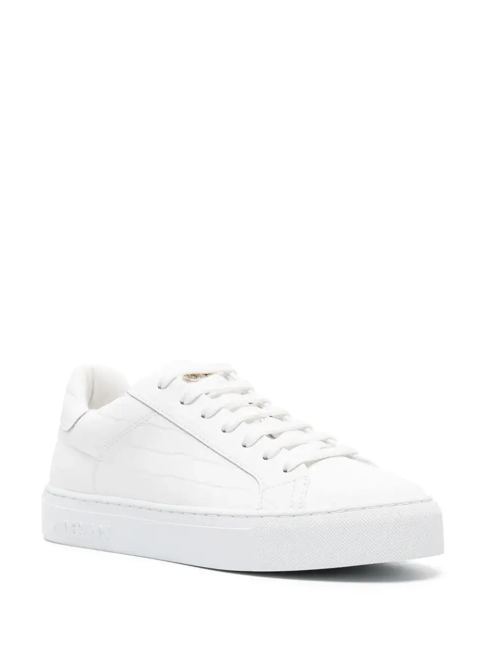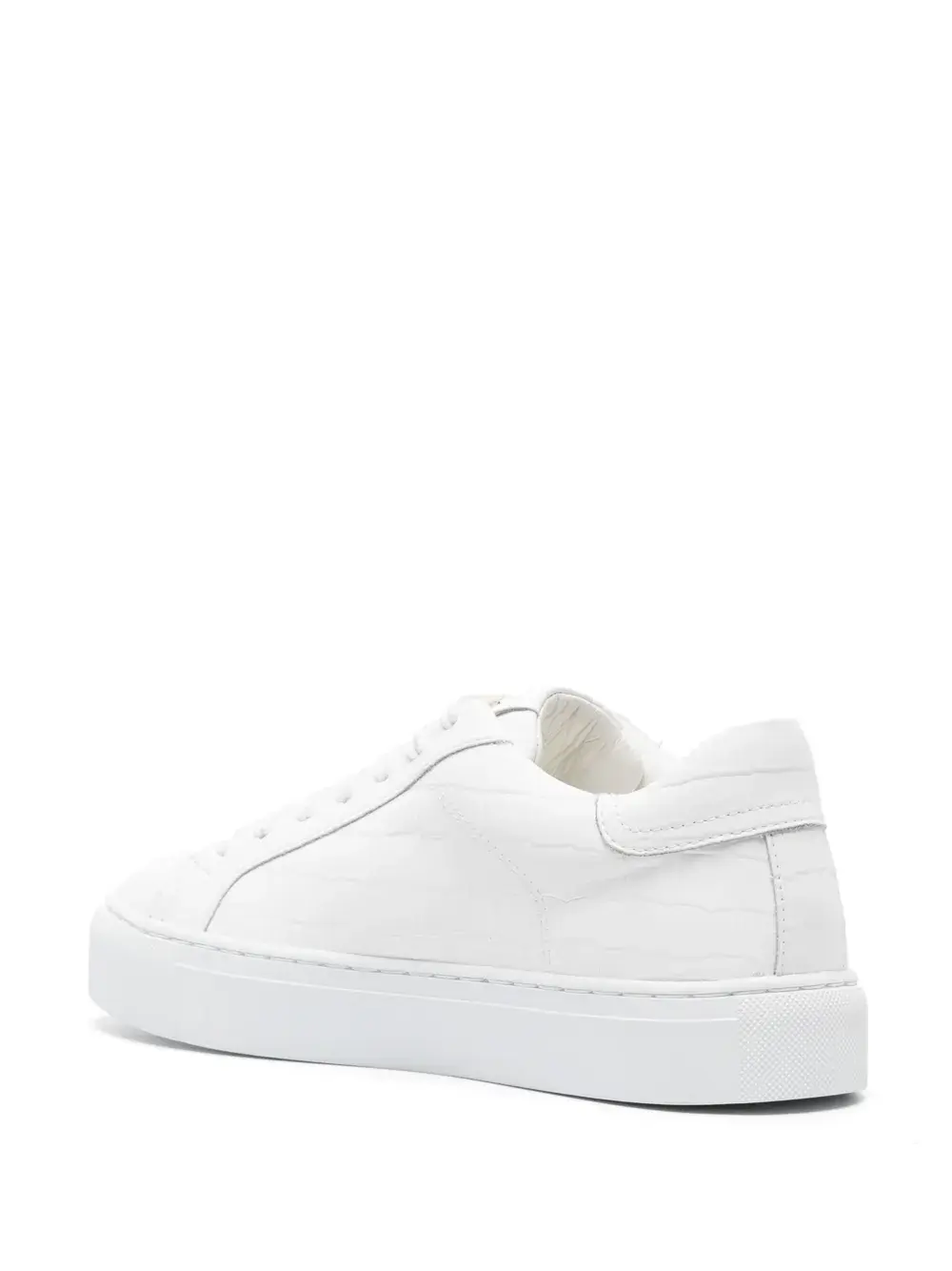 Кеды Essence Tuscany с тиснением от Hide&Jack. Тисненый эффект крокодиловой кожи, заплатка с логотипом на язычке, шнуровка спереди, плоская резиновая подошва и закругленный носок. Цвет: белый.