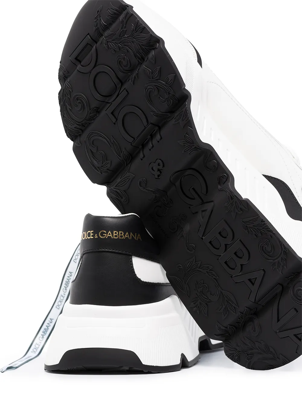 Dolce & Gabbana представляют новый взгляд на массивные кроссовки. В коллекцию весна-лето 2020 вошли черно-белые кожаные кроссовки Daymaster от Dolce & Gabbana (Дольче энд Габбана). Дизайн в двух тонах, резиновая подошва и передняя шнуровка.