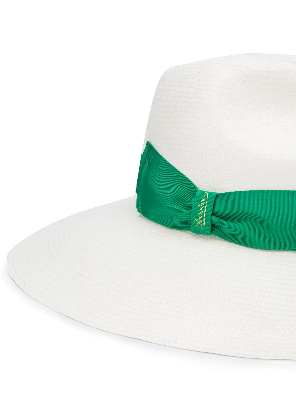 Шляпа Sophie Panama от Borsalino. Декоративная лента, широкие поля и дизайн в двух тонах. Цвет: белый, зеленый.