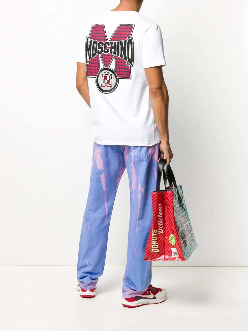 Футболка с логотипом от Moschino (Москино). Круглый вырез, короткие рукава и принт с логотипом сзади. Цвет: белый.