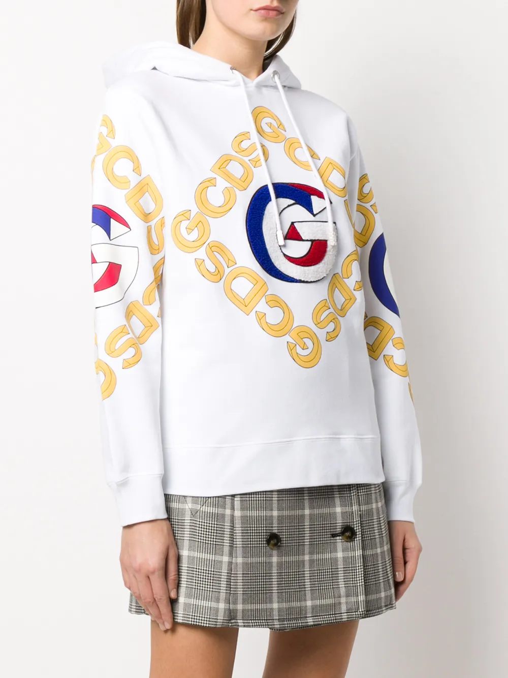Принт с логотипом на груди, затягивающийся на шнурок капюшон, длинные рукава, манжеты в рубчик и подол в рубчик.