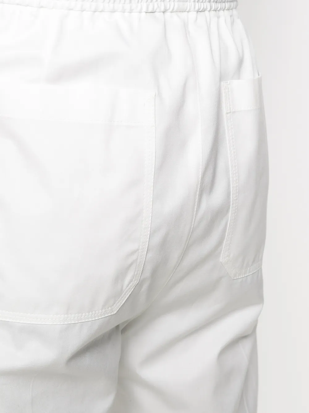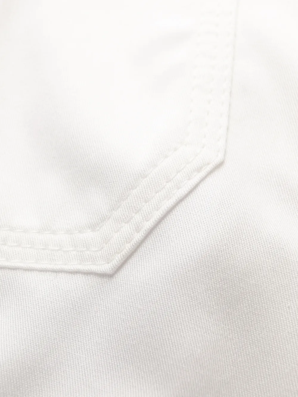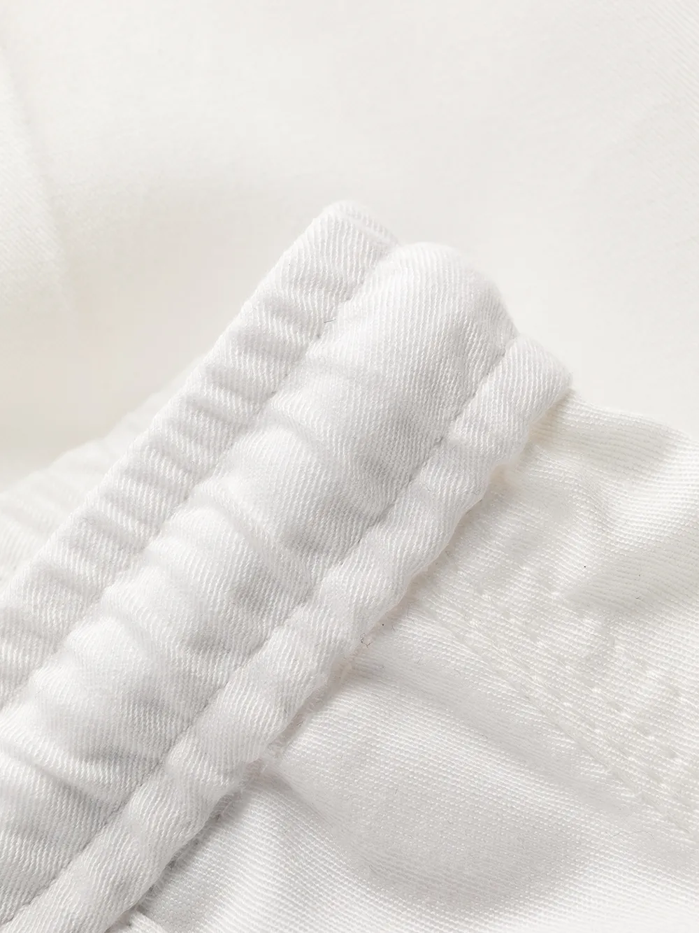 Прямой крой, эластичный пояс, кулиска и два накладных кармана сзади. Цвет: белый.