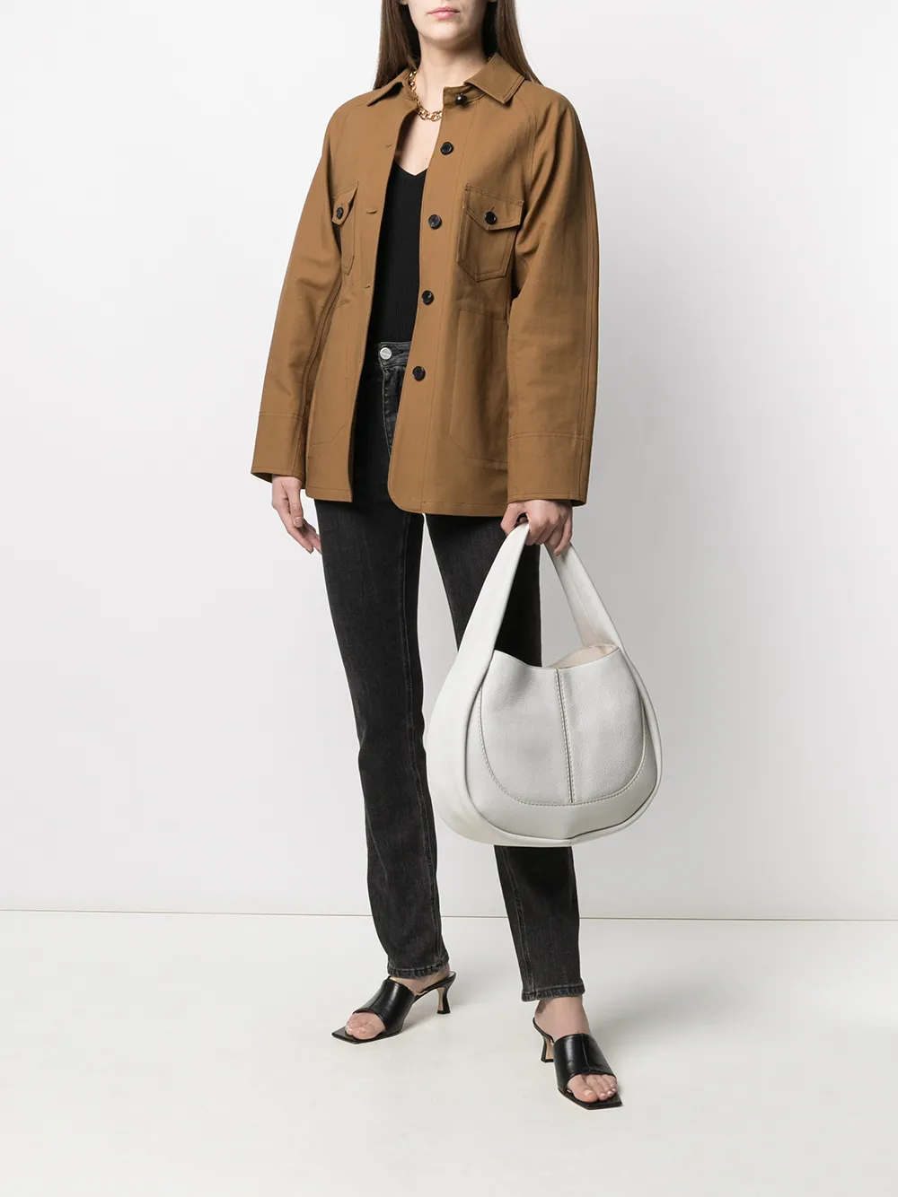 Ручка с плоским верхом, тональная строчка, тисненый логотип спереди, магнитная застежка и внутренний карман на молнии. Цвет: белый.