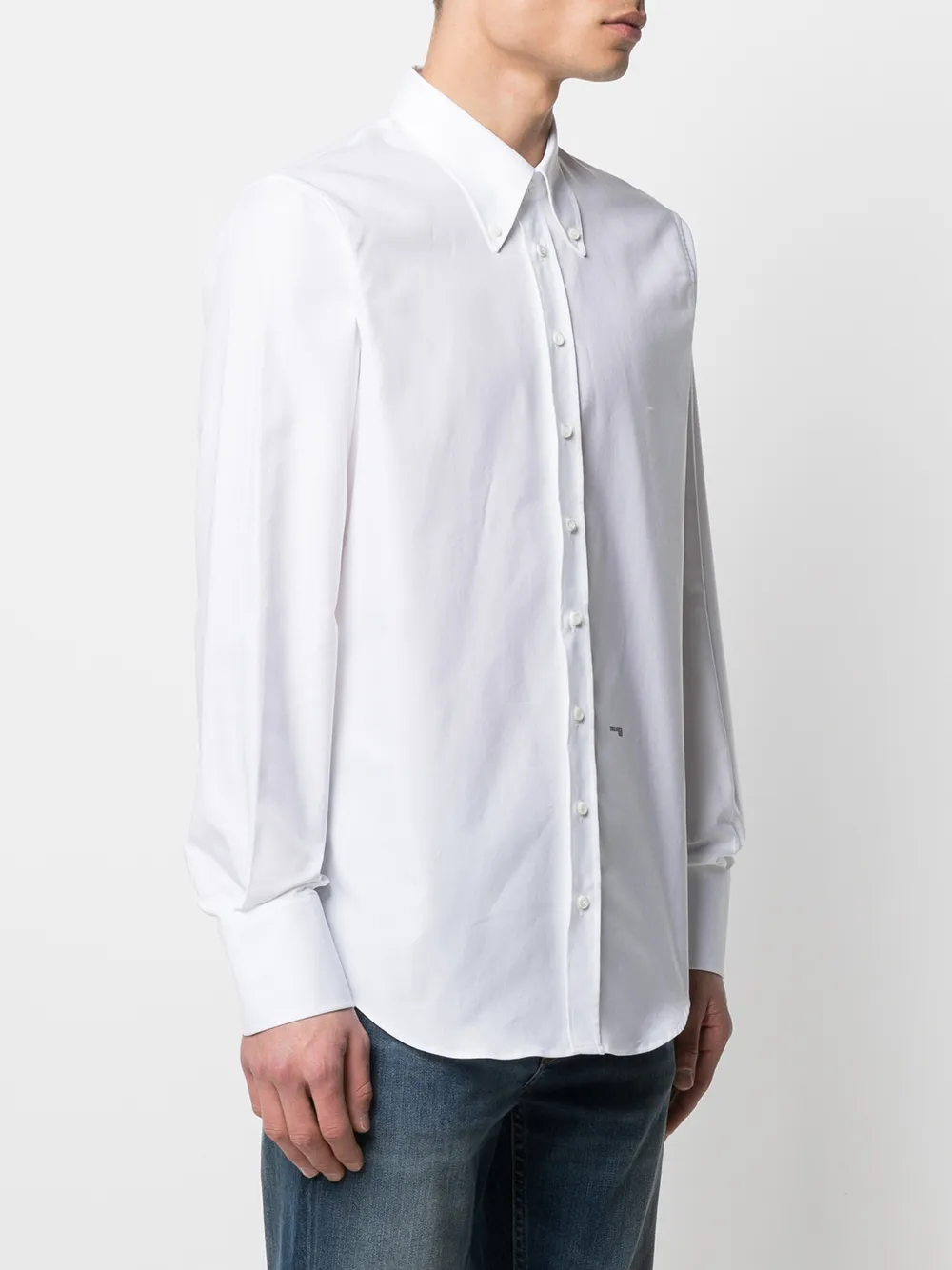 Вышитый логотип, воротник на пуговицах, застежка на пуговицах спереди, длинные рукава, манжеты на пуговицах и закругленный подол. Цвет: белый.