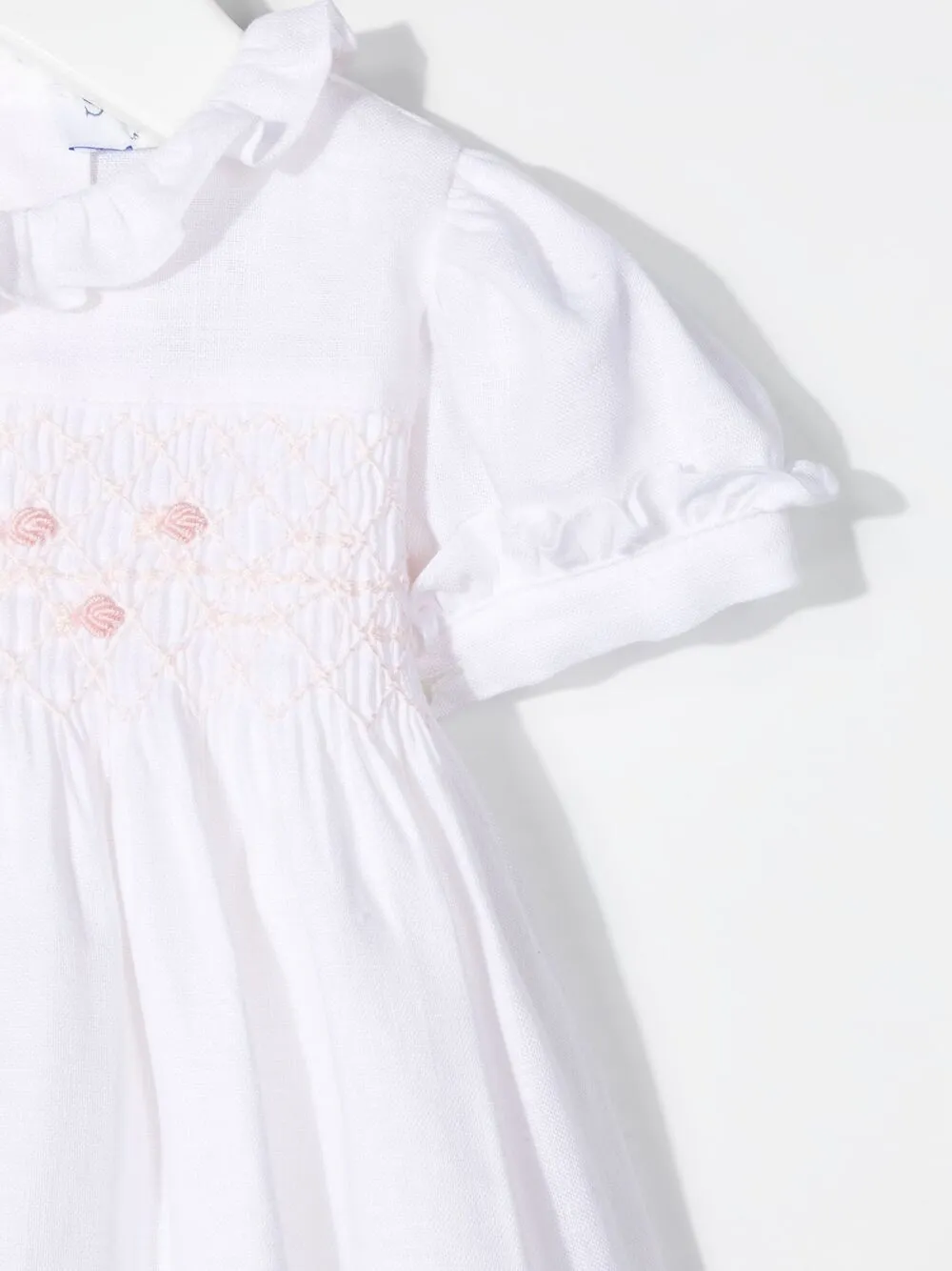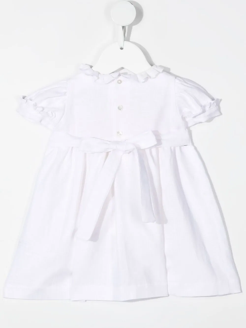 Подробнее о товаре: Воротник с оборками, вставка со сборками, бант, круглый вырез, короткие рукава, расклешенный крой и прямой подол. Цвет: белый. Этот товар как минимум на 50% состоит из материалов, которые признаны более безопасными для окружающей среды, и/или произведены с использованием методов, которые помогают сократить потребление воды и химических веществ. Узнать больше о том, какие товары получают отметку «Ответственный выбор», можно из материала «Как мы оцениваем экологичность и этичность».
