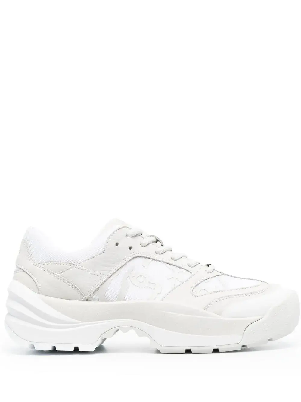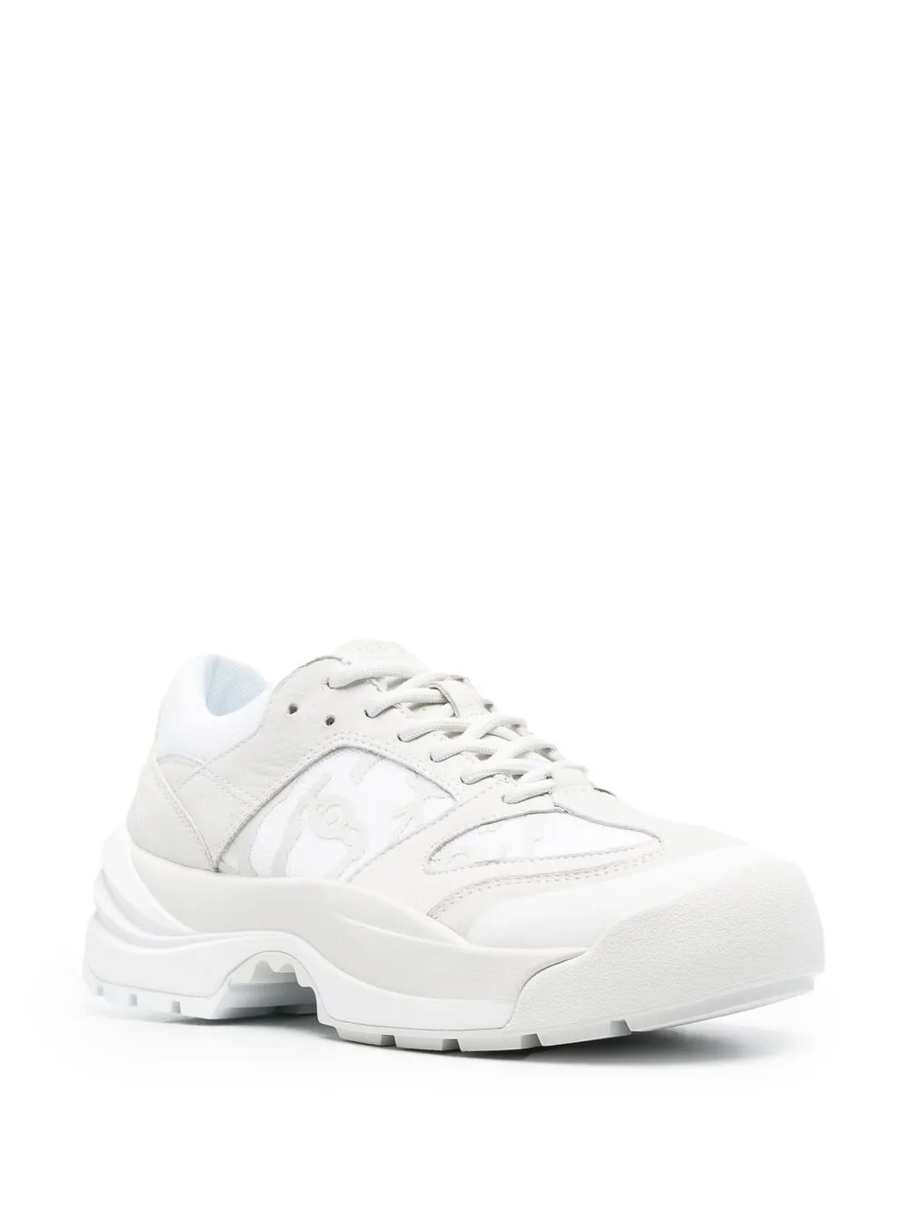 Вставки, язычок с логотипом, шнуровка спереди, закругленный носок и ребристая резиновая подошва. Цвет: белый.