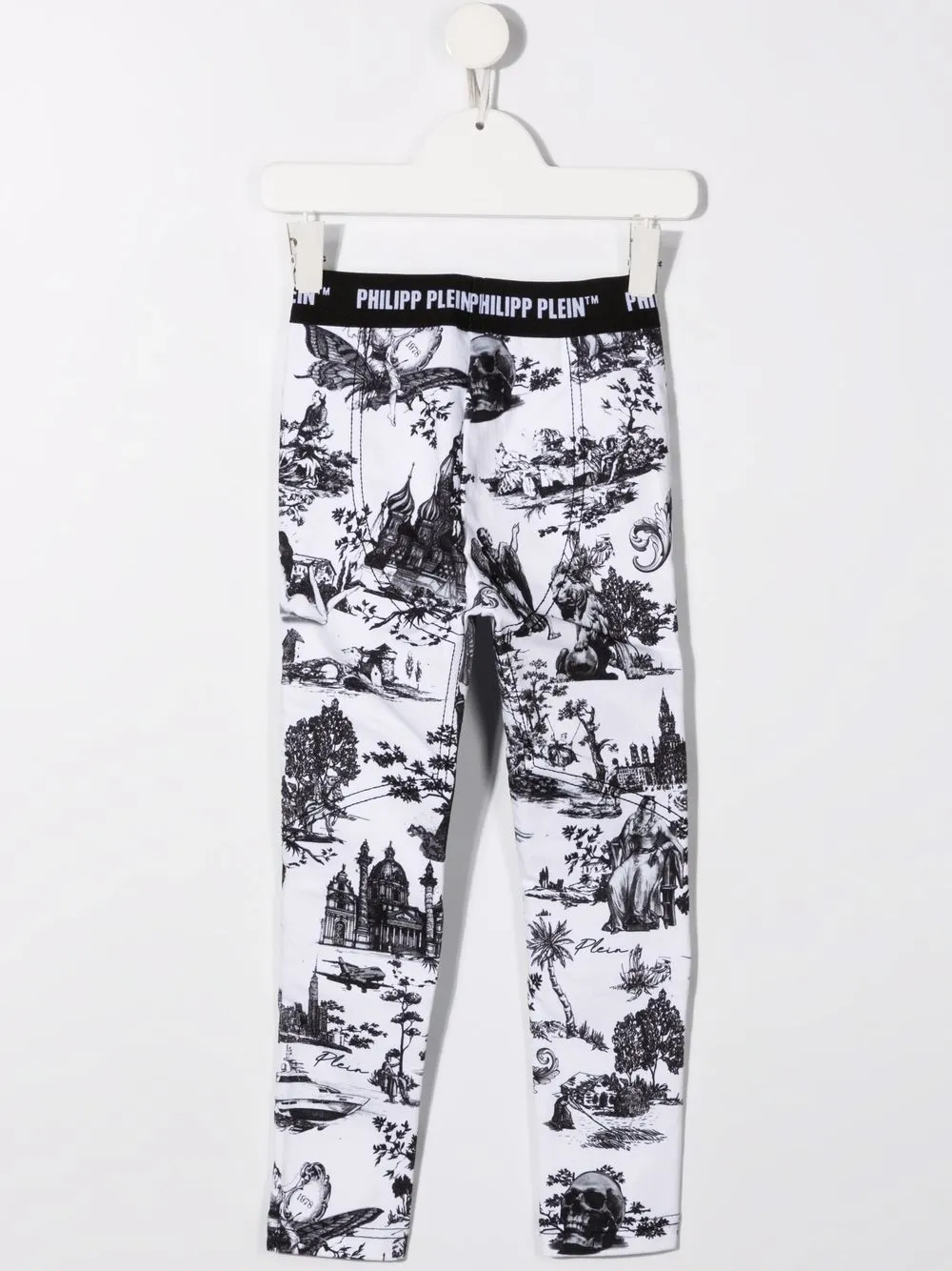 Леггинсы En PLEIN с принтом Philipp Plein Junior, белый