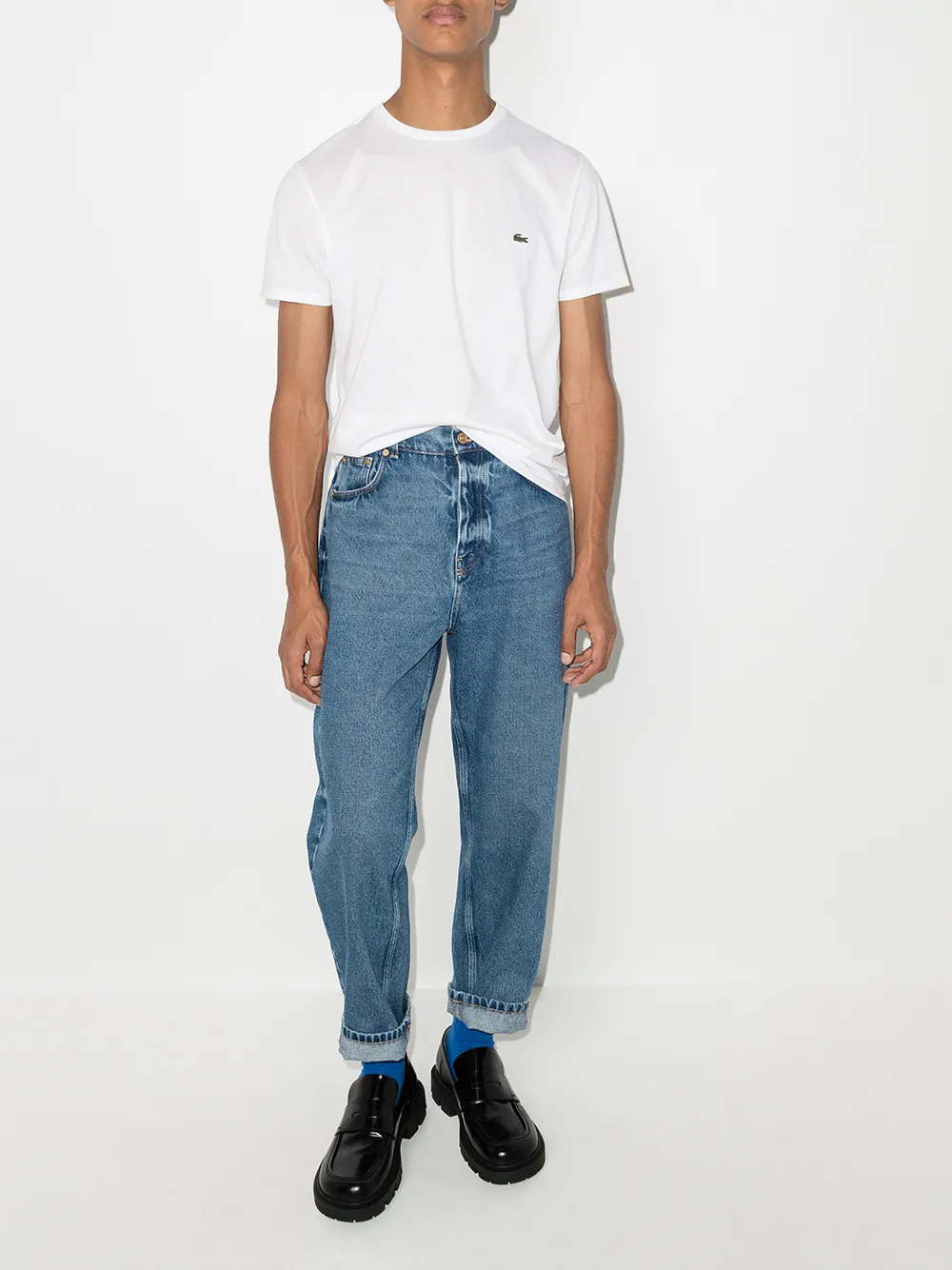 Вышитый логотип на груди, круглый вырез, короткие рукава и прямой подол. Цвет: белый.