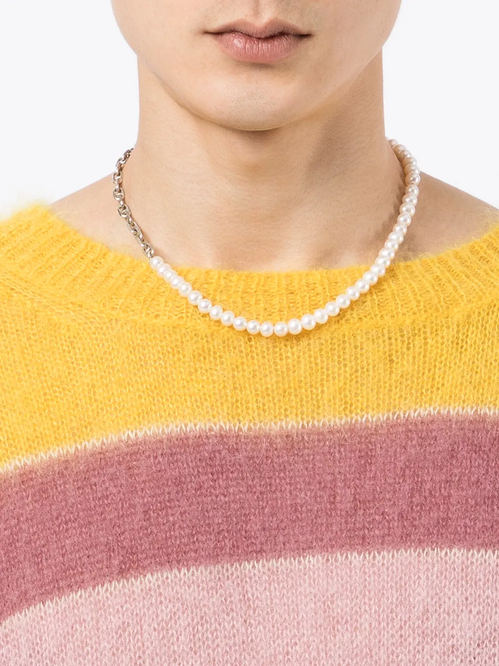 Канатная цепь, вставки из жемчуга южных морей и Т-образная застежка. Цвет: серебристый.