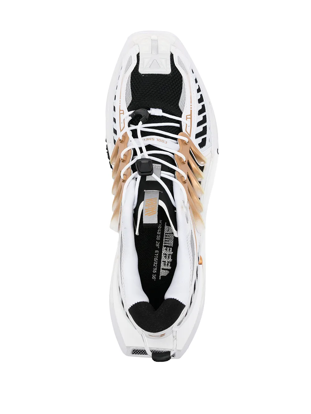 Сочетание двух оттенков, петля для подтягивания сзади, закругленный носок, шнуровка спереди, стелька с логотипом и массивная резиновая подошва.