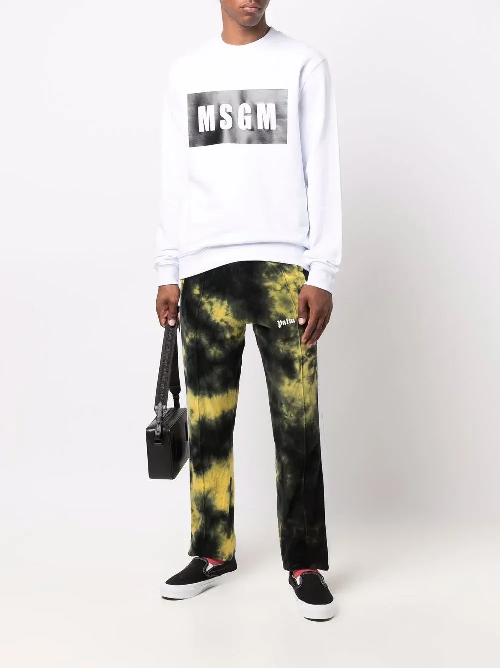 Логотип спереди, круглый вырез, длинные рукава и прямой подол.