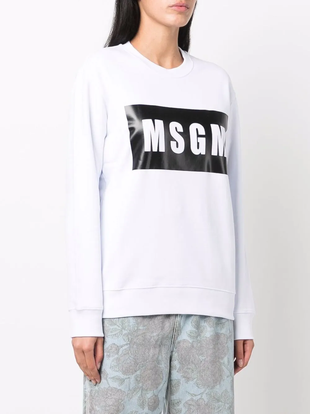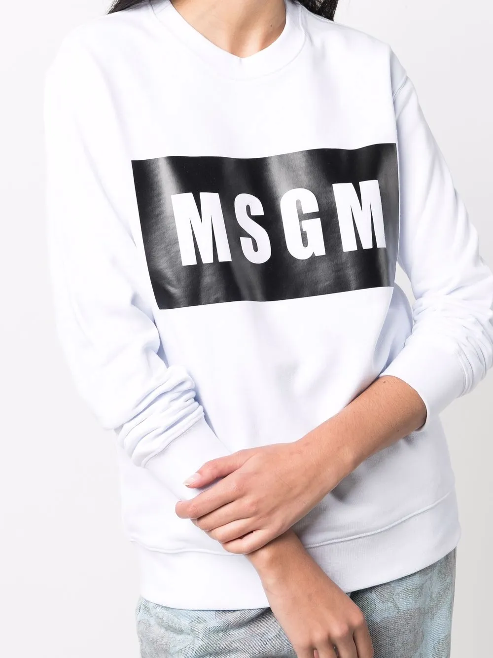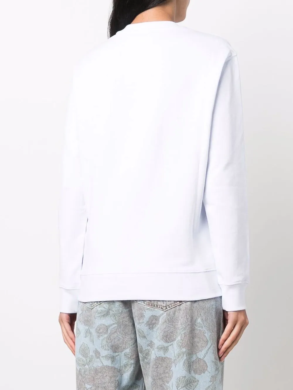 Детали в рубчик, принт с логотипом на груди, круглый вырез и длинные рукава. Цвет: белый.