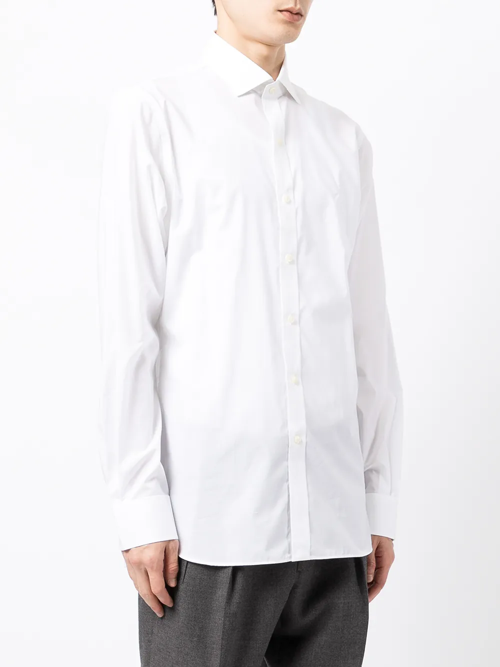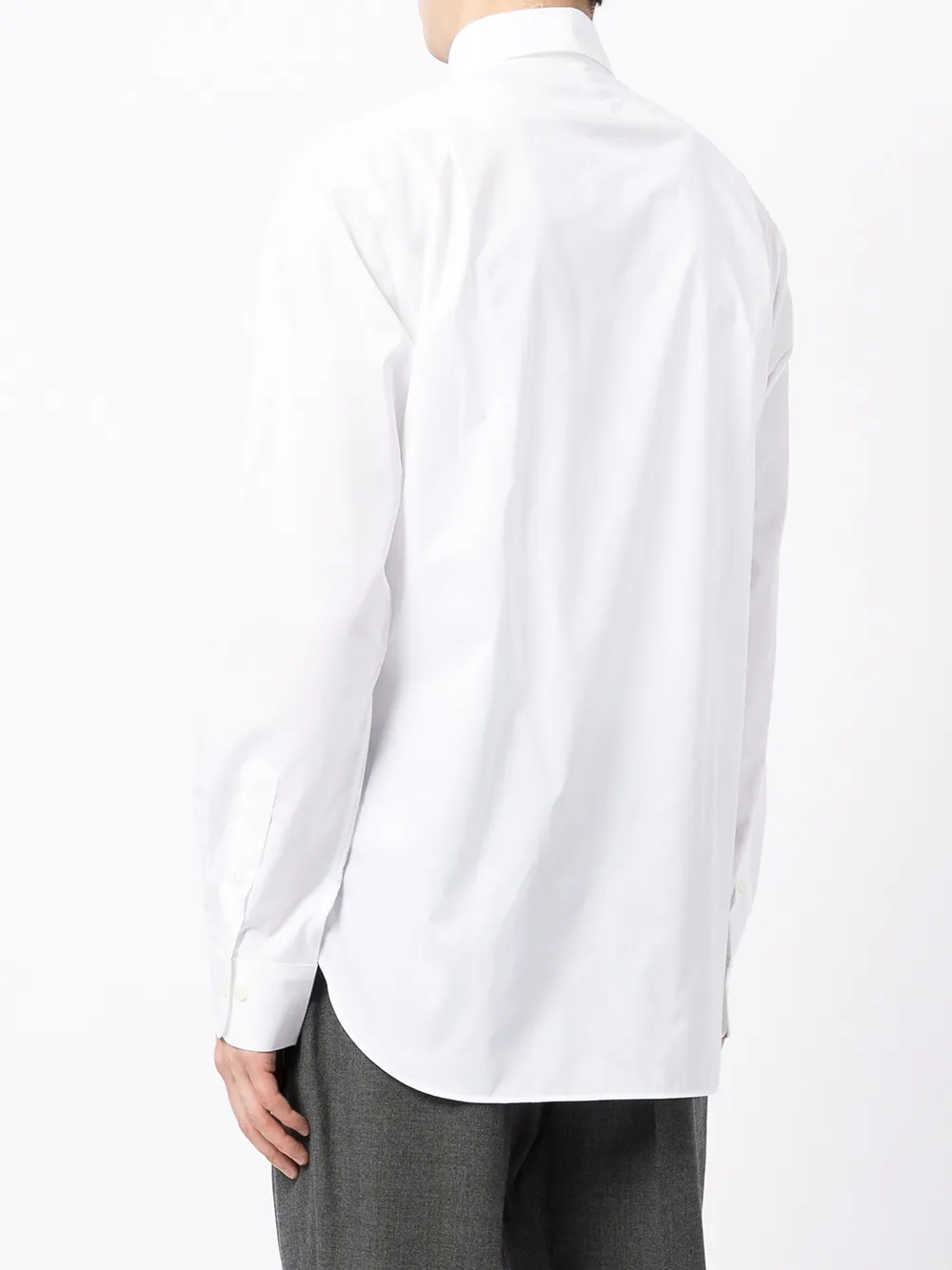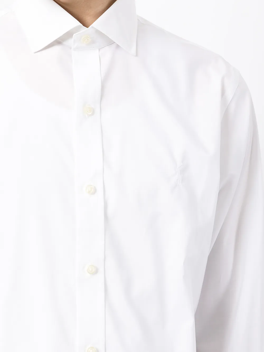 Знаковый логотип Polo Pony, классический воротник, застежка на пуговицах спереди, длинные рукава, манжеты на пуговицах, закругленный подол и тональная строчка. Цвет: белый.