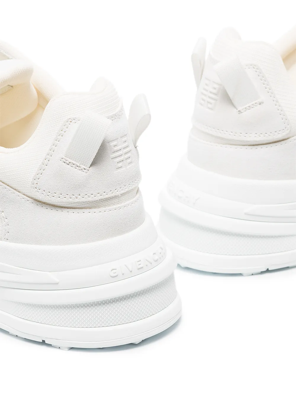 Шнуровка спереди, закругленный носок и ребристая резиновая подошва. Цвет: белый.