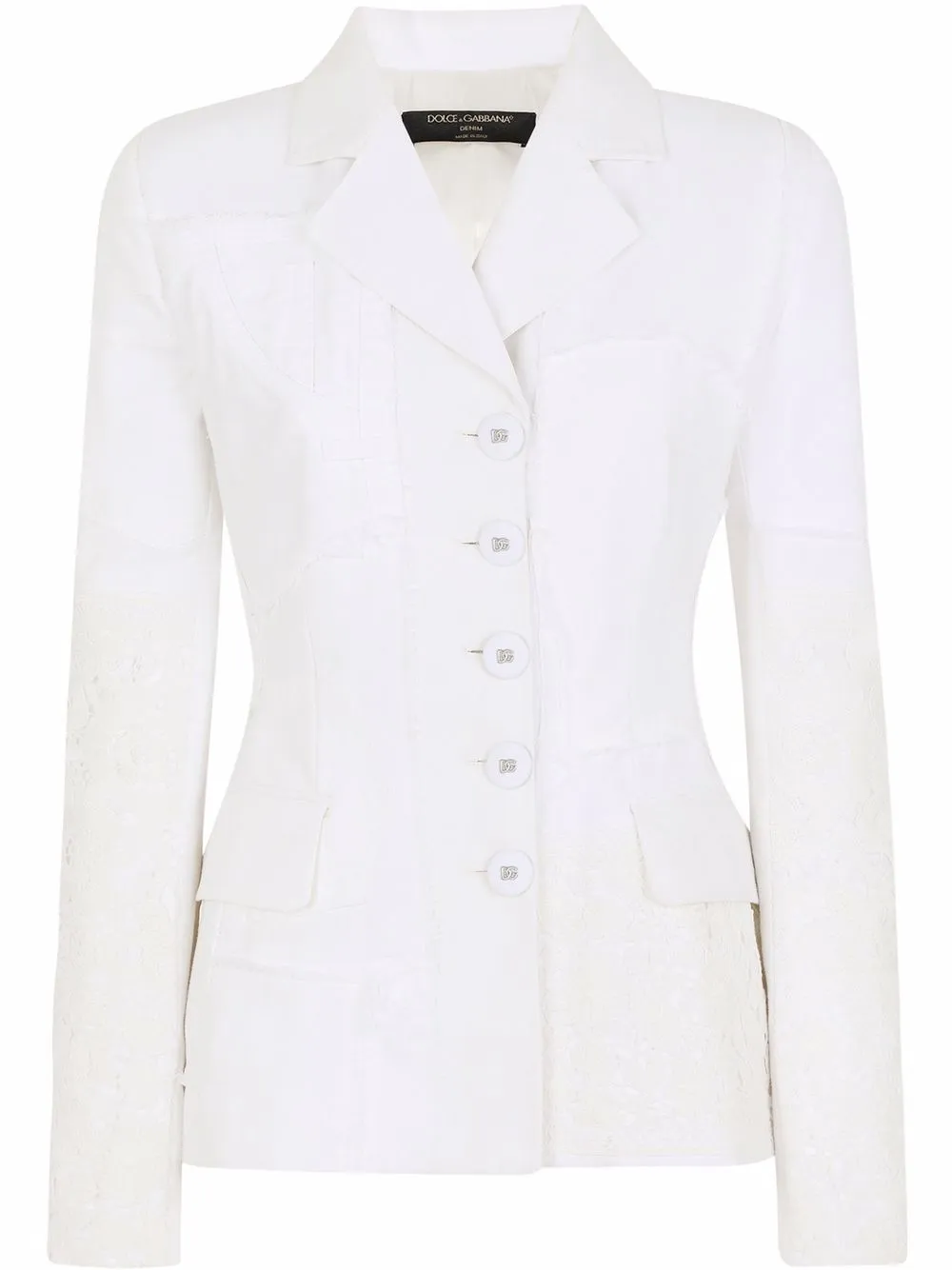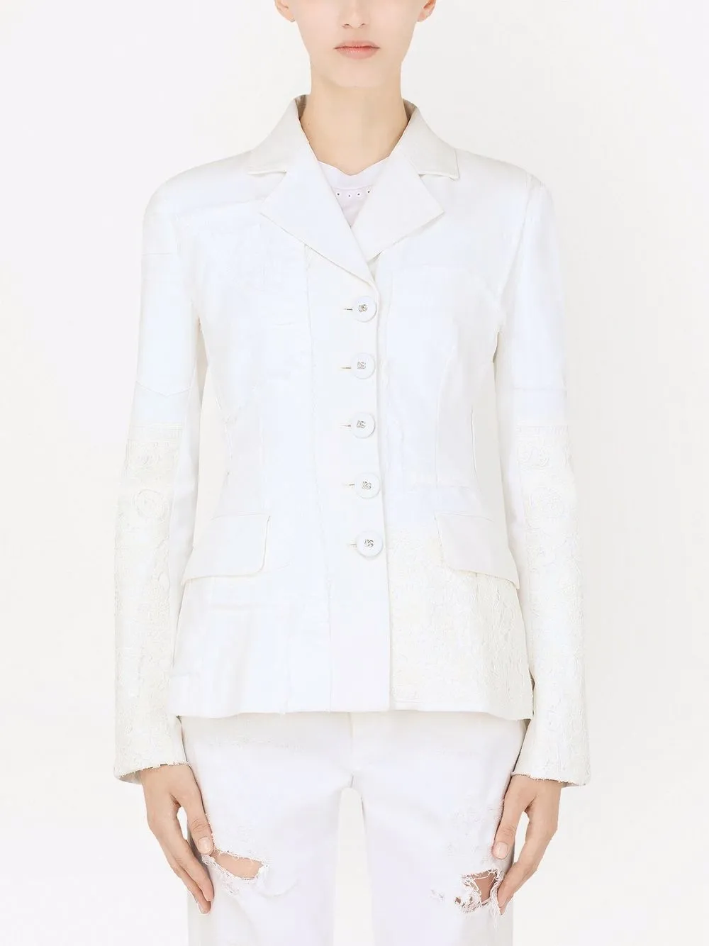 Однобортный блейзер в технике пэчворк DOLCE & GABBANA, белый
