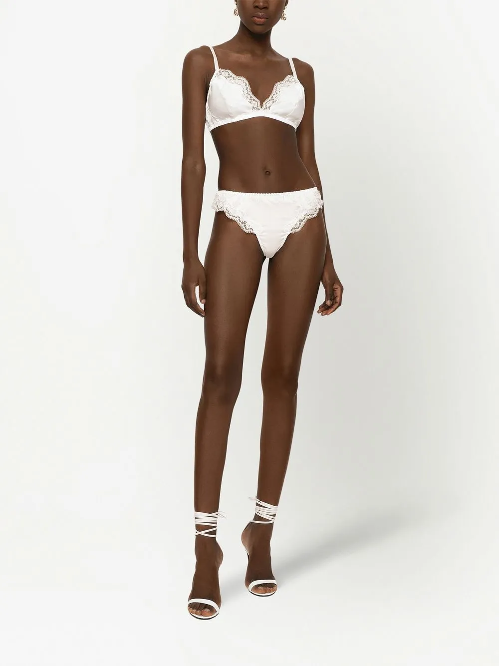 Атласные трусы-стринги с кружевом DOLCE & GABBANA, белый
