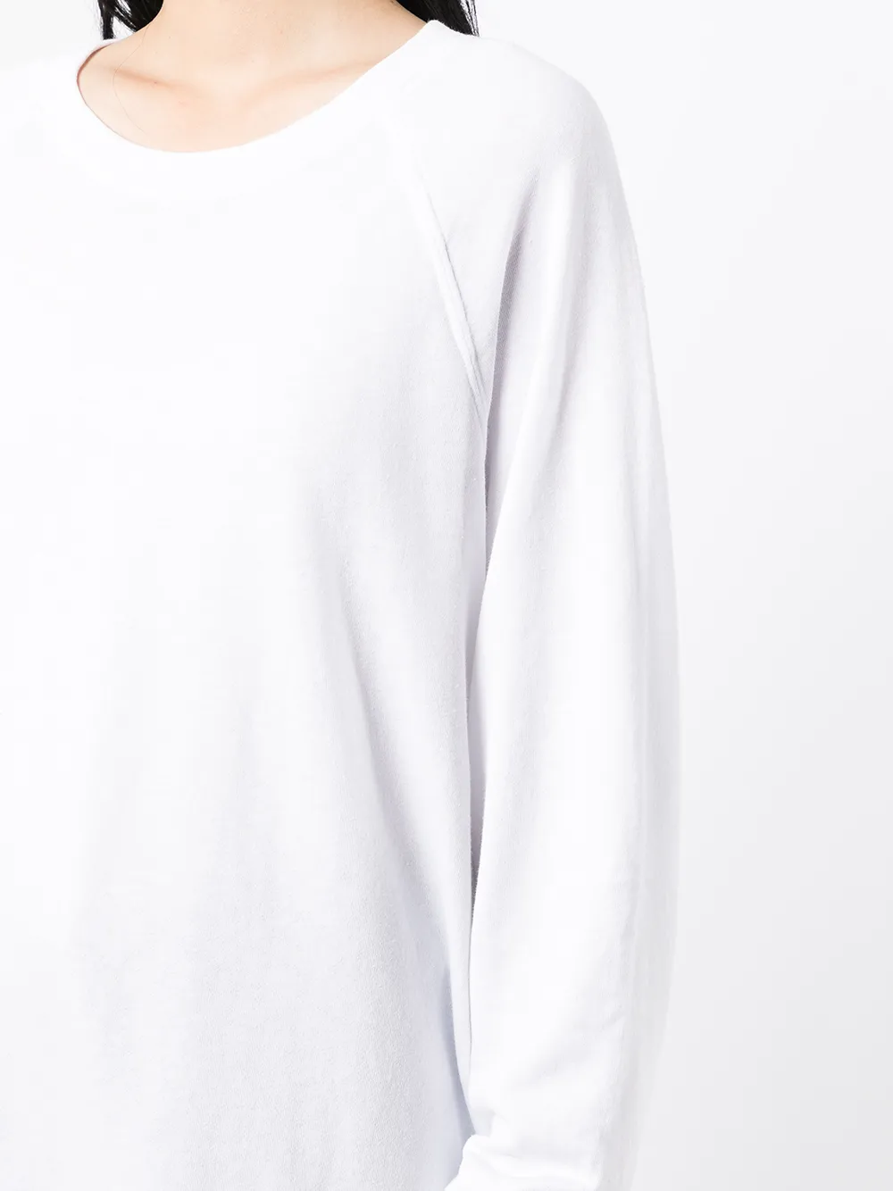 Круглый вырез, длинные рукава и прямой подол. Цвет: белый.