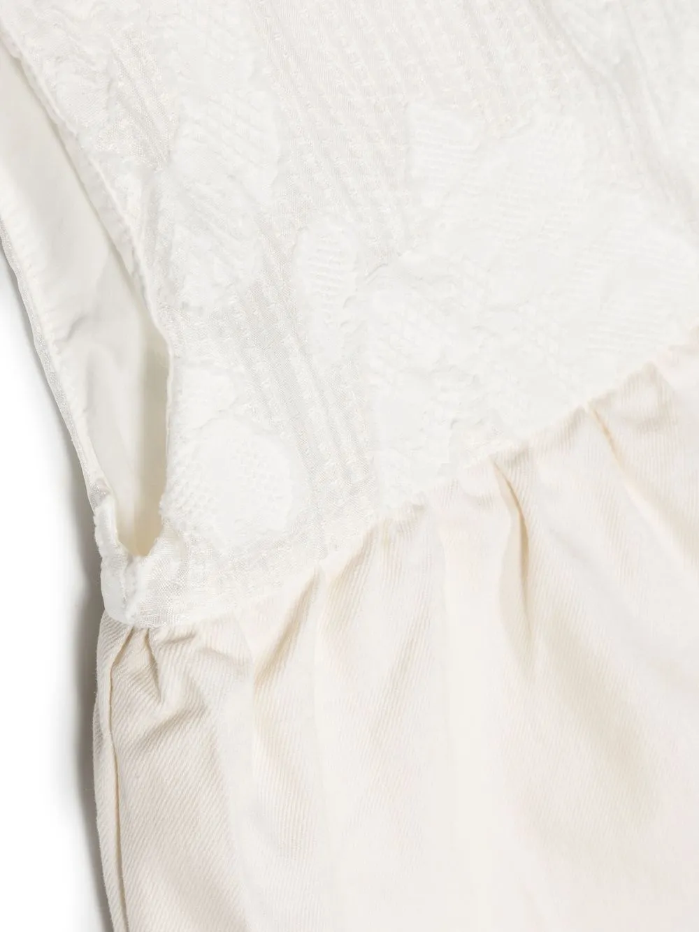 Экрю, эластичный хлопок, ярусная юбка, необработанные края, вставки из цветочного кружева, круглый вырез, без рукавов и юбка А-образного силуэта. . Узнать больше о том, какие товары получают отметку «Ответственный выбор», можно из материала «Как мы оцениваем экологичность и этичность».
